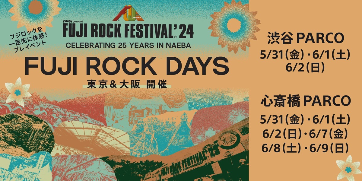 『フジロック』の魅力を体感できるプレイベント『FUJI ROCK DAYS』が、東京・渋谷PARCOにて5月31日(金)~6月2日(日)の3日間、大阪・心斎橋PARCOでは5月31日(金)~6月2日(日)、6月7日(金)~6月9日(日)の6日間開催される。