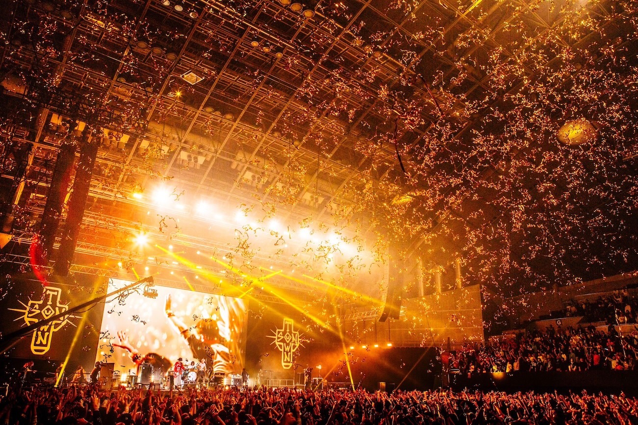 The BONEZが結成10周年を迎え、バンド史上最大規模の単独アリーナ公演『10th Anniversary Tour 47 AREAS Grand Finale “SUNTOWN”』を4月6日に幕張メッセイベントホールで開催。ちなみにツアー名は、彼らの代名詞と言える曲「SUNTOWN」から付けられている。自由にフィジカルを動かしたいモッシュ&ダイバー、一方でじっくり観たい人や親子で楽しみたい人もいて、いろんな楽しみ方をみんなでシェアできる場所=“SUNTOWN”として選ばれたのが今回の幕張メッセなのだ。