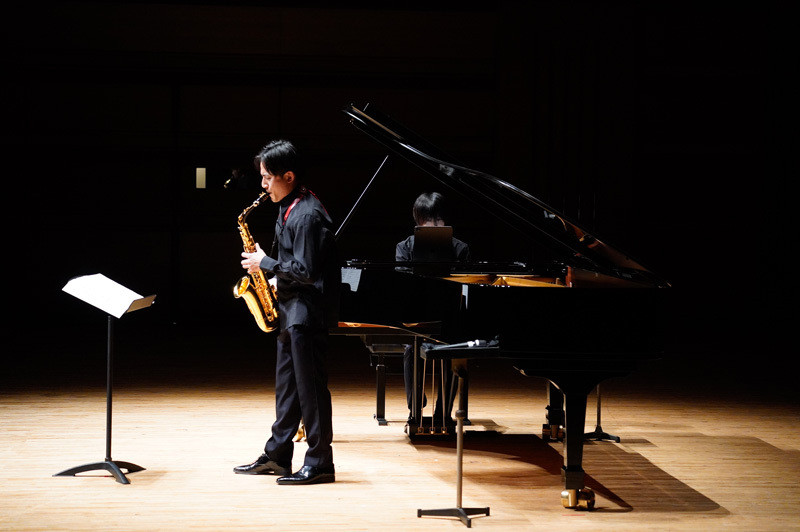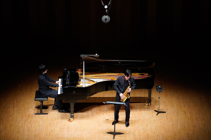 二曲目はお馴染みデュボワ「ディヴェルティスマン」。他愛もないフレーズによって成り立っているような軽妙な作品だが、サクソフォンとピアノの超絶技巧によるライブ感あふれる掛け合いが楽しく、聴いていても心地よい。二人の音楽性とテンペラメントがこうも見事に同調した生命感あふれる演奏を同じ空間で目の当たりにできるのは、聴き手としても最高にエキサイティングな体験だ。
