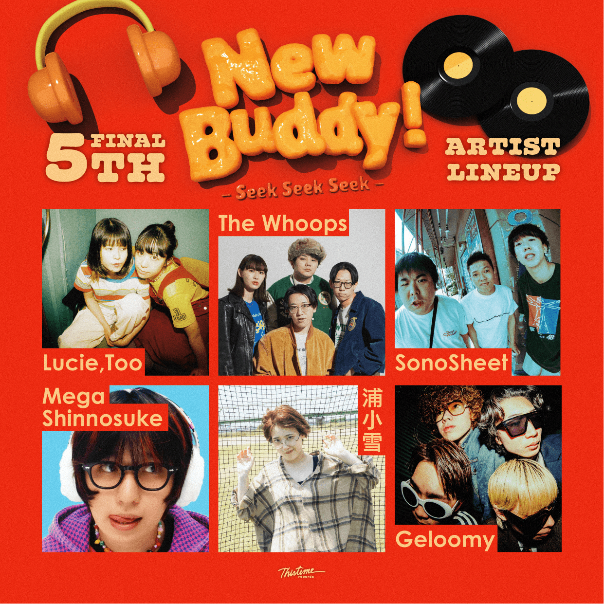 『New Buddy! -Seek Seek Seek-』は、昨年THISTIME RECORDSが設立20周年を記念して東京と大阪で開催したサーキット型フェスのスピンオフバージョン。今回、最終出演者としてLucie,Too、The Whoops、SonoSheet、Mega Shinnosuke、浦小雪、Geloomyの6組とタイムテーブル、そして深夜の部が発表になった。深夜の部は、BASEMENTBAR、mona records、LIVEHOLICにて開催となる。