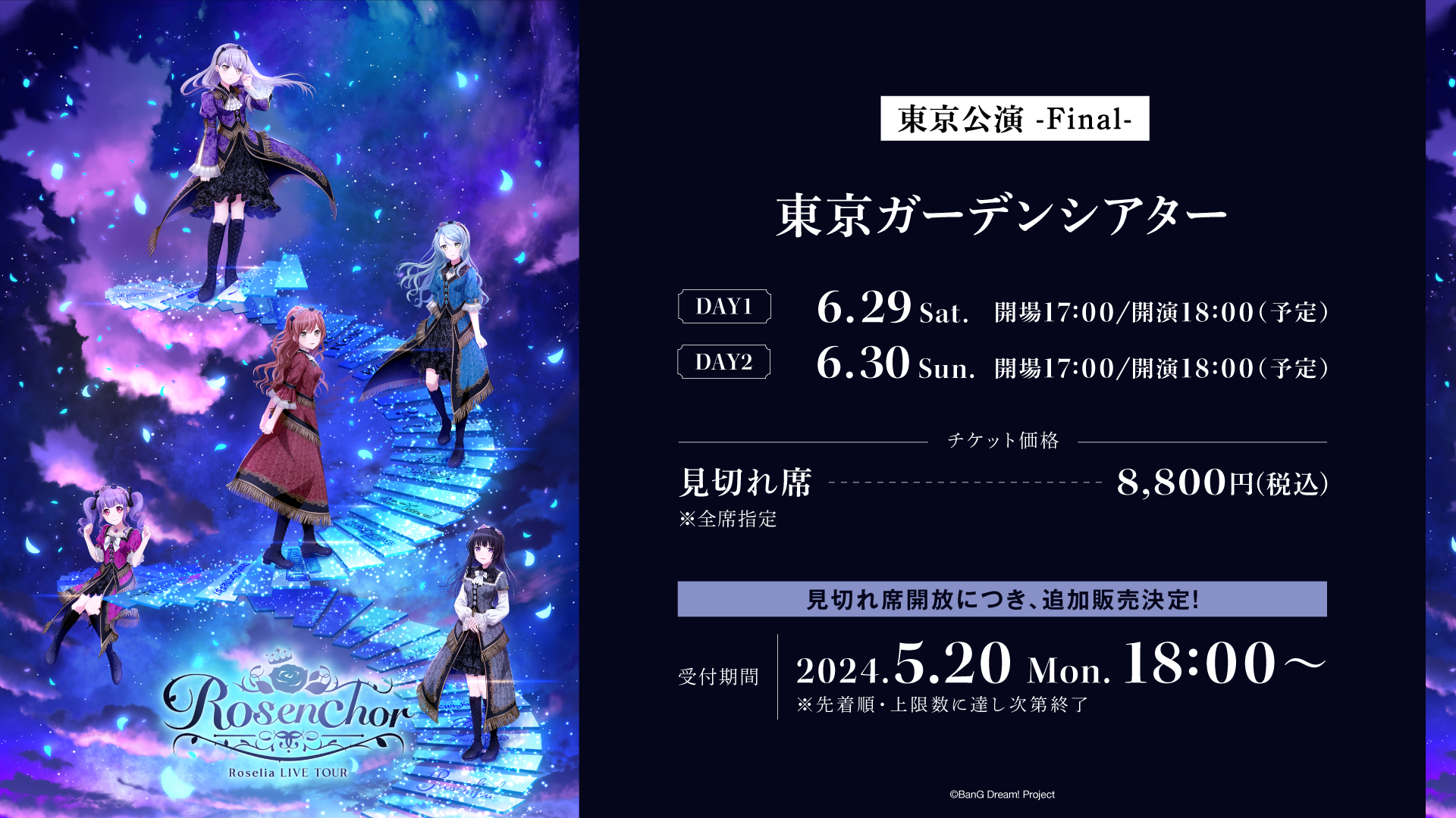 全国ツアーは、残すところ5月26日(日)の福岡公演、6月29日(土)・30日(日)東京公演 -Final-の計3公演。東京公演 -Final- については、見切れ席開放による追加発売とライブ有料配信の実施も決定。いずれも、5月20日(月)18時よりチケット発売開始(見切れ席は先着での発売)。