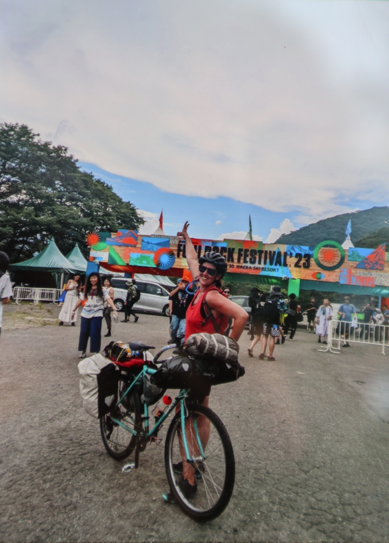 『フジロック』までの道のりを尋ねると、「私、ここまで自転車で来たの。青森から」と耳を疑う返答が! 普段は都内のインターナショナルスクールで教師をしているクレアさんですが、休日には日本中を自転車で旅しているそうで、「今回は青森から三陸海岸を通って仙台へ、そこから秋田へ行ってから苗場まで2週間の旅。山道でシャトルバスのみんなが手を振ってくれて楽しかった〜!」とタフ過ぎる話を聞かせてくれました。「毎回来るたびにその年がベストイヤーになる。そんな『フジロック』を私は心から愛しています。もちろん来年も来るわよ!」と大きな『フジロック』愛を語ってくれました。