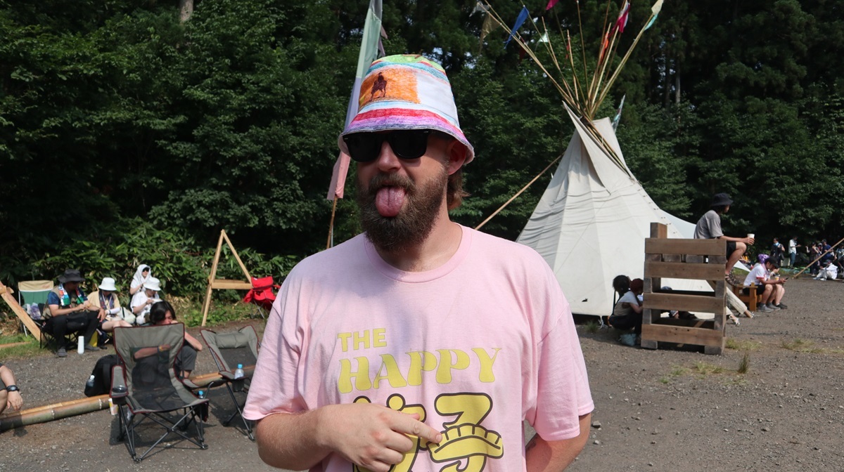 ナイスなTシャツを着ていたオークランド出身のフェンさん(32歳)は、夫婦で初参加。たくさんの友人たちとは『フジロック』で合流したそう。来場した感想を尋ねると「デカい。巨大なフェスです。オーディエンスはみんないい人で、思いやりを感じるし、参加者同士がお互いのことを考えて行動している。こうした大型フェスで人々が大勢集まる時に、それはとても重要なこと。『みんなで楽しもう!』というのが大切だし、私も同じ気持ちです」