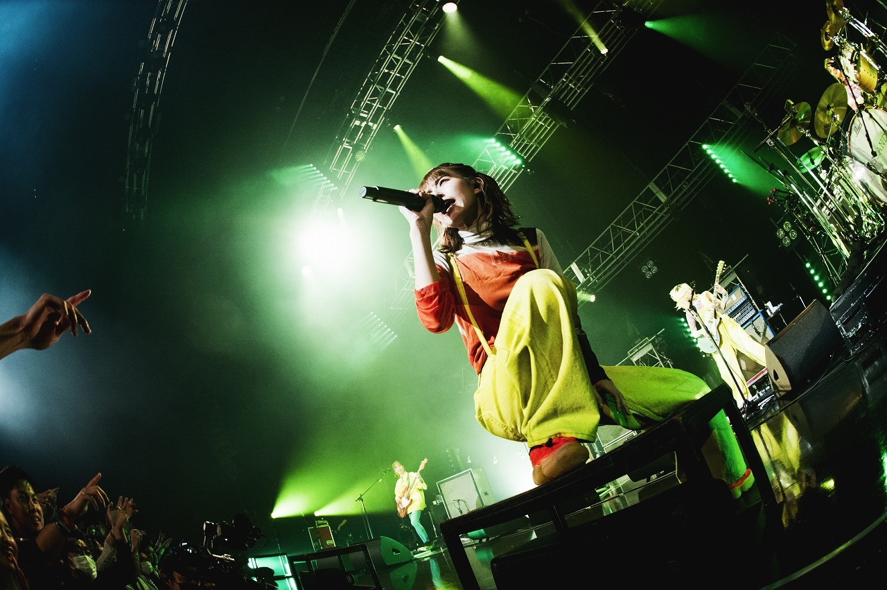 その後は「最終兵器、君」、「テイクミーアウト」、「Fuzzy」とライブ定番曲を畳みかけ、会場のボルテージが最高潮に達したタイミングで、MAMIがボーカルを務めるリスナーへの想いをしたためた楽曲「あなたへ」を披露。会場は熱を帯びたまま、エモーショナルな空気に誘われた。