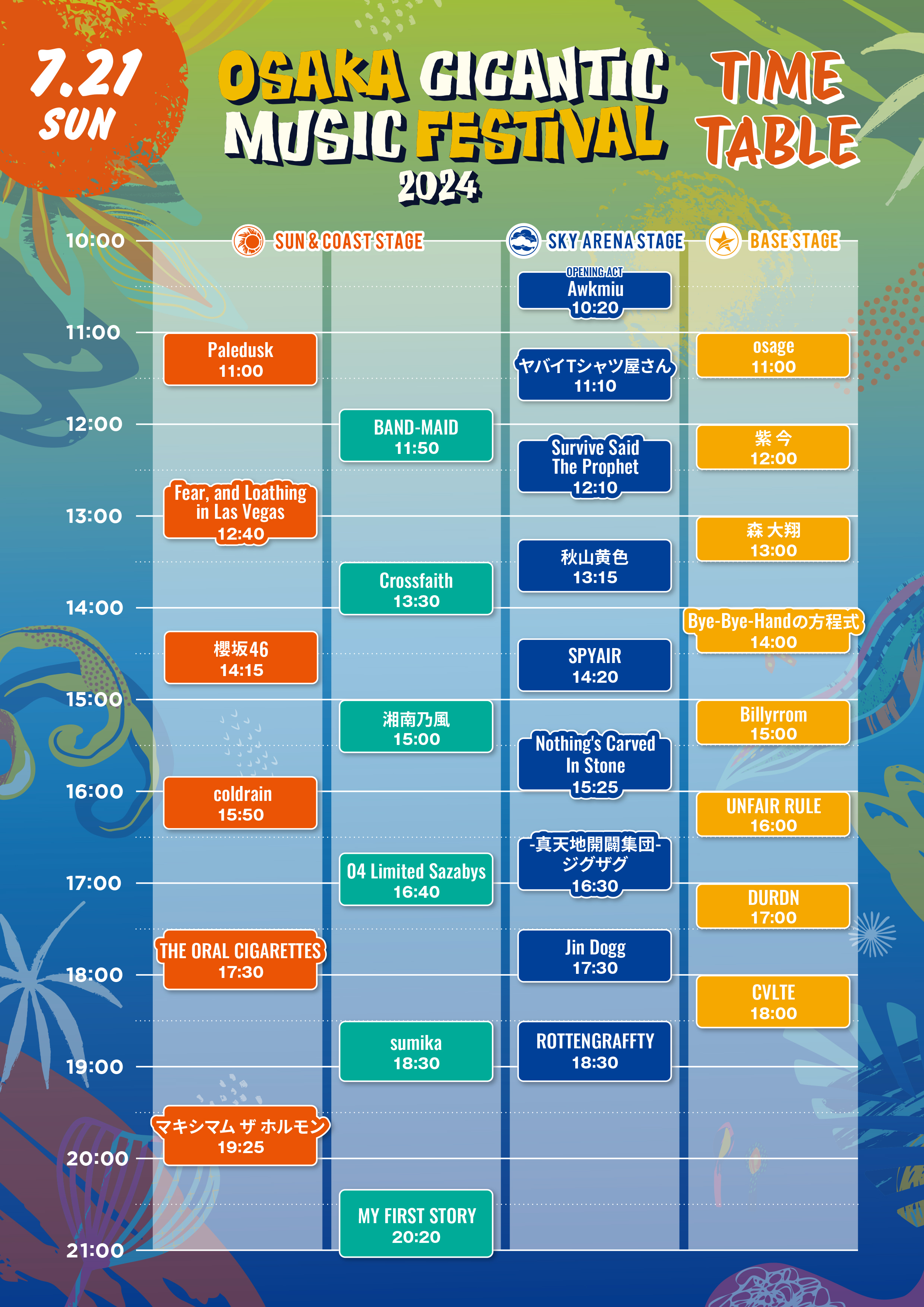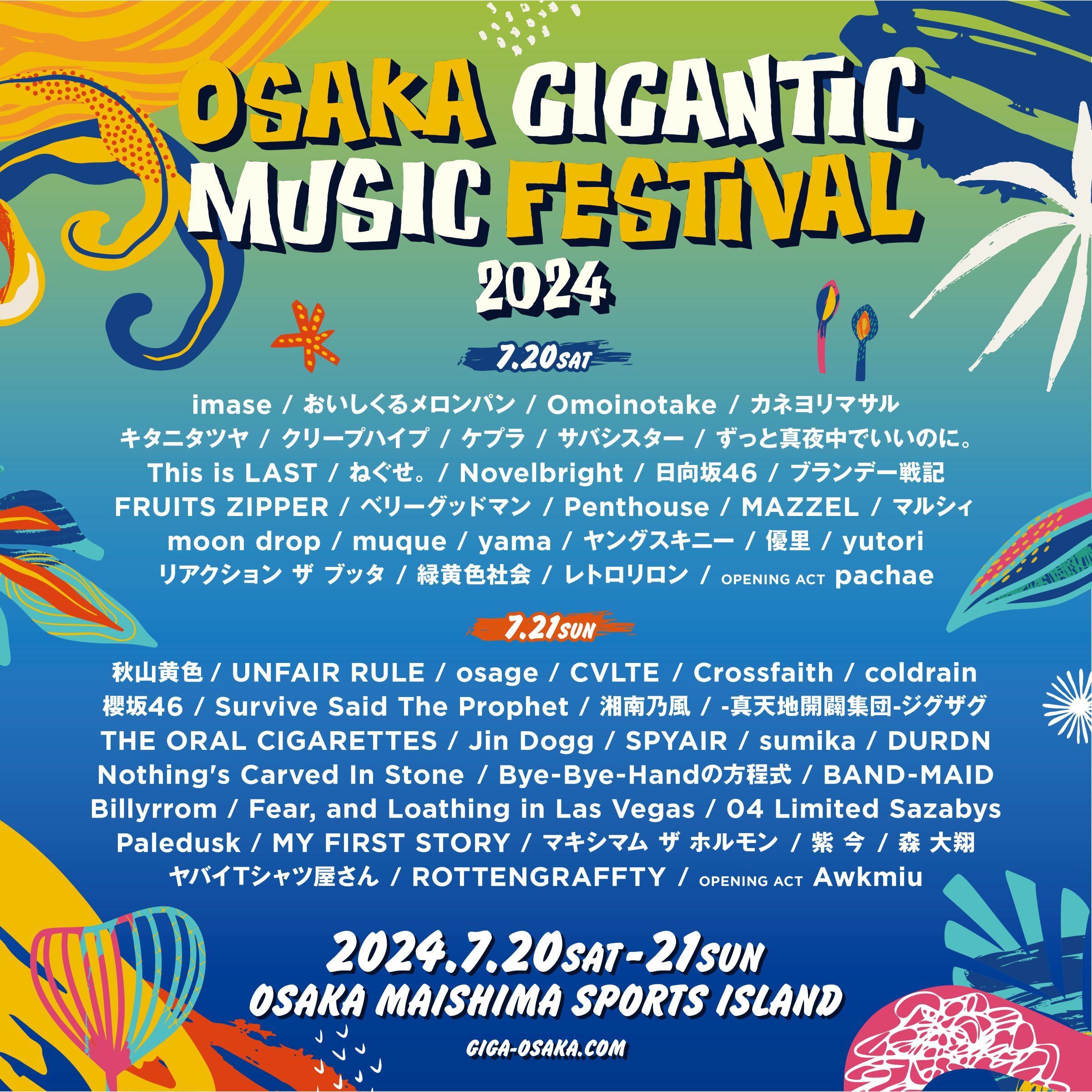 7月20日(土)、21日(日)に大阪・舞洲スポーツアイランド 特設会場にて開催される『OSAKA GIGANTIC MUSIC FESTIVAL 2024』のタイムテーブルとオープニングアクトが発表された。