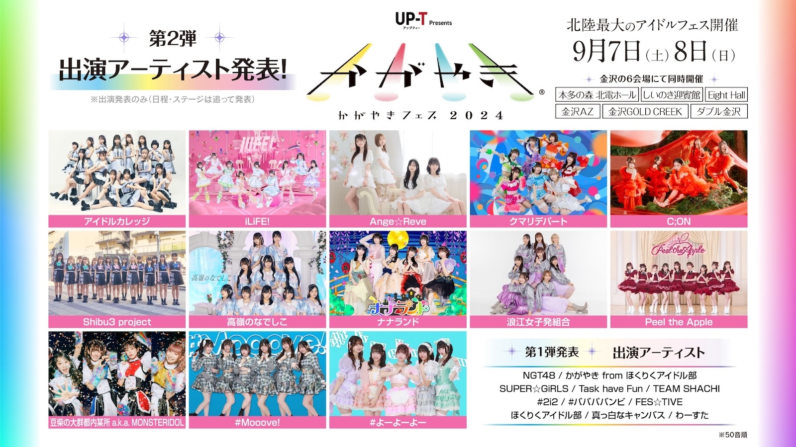 2024年9月7日(土)・8日(日)の2日間にわたり、本多の森 北電ホールをメイン会場とし、ライブハウスを含む6会場にて開催される『UP-T presents かがやきフェス2024』の第2弾出演アーティストと会場詳細が発表された。