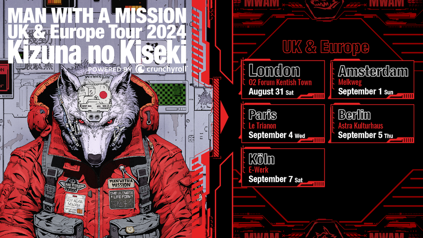 MAN WITH A MISSIONが、先日発表した北米ツアー開催に続き、UK&ヨーロッパツアー『MAN WITH A MISSION UK & Europe Tour 2024 “Kizuna no Kiseki” Powered by Crunchyroll』の開催を発表した。
