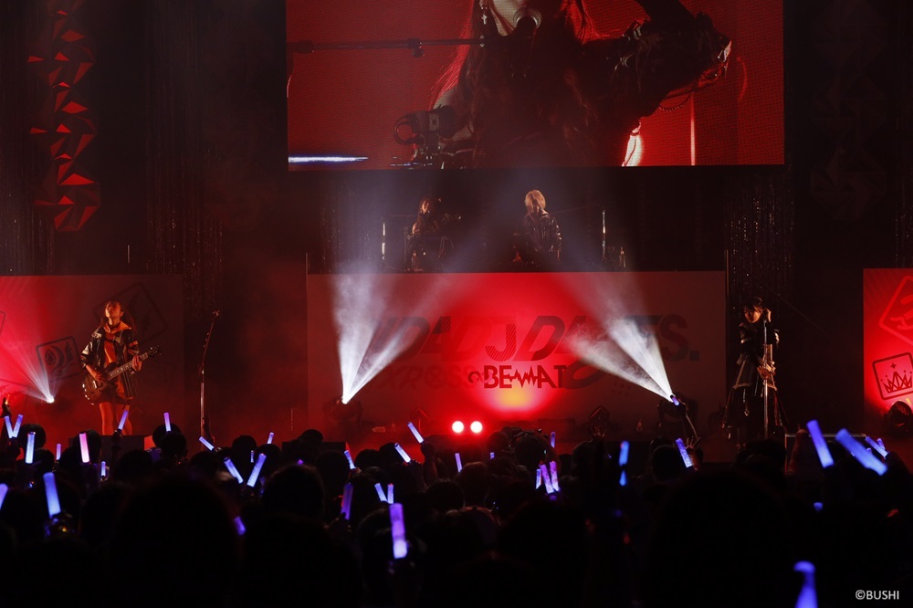 各ユニットの個性が色濃く、明確になってきたのも『D4DJ』の“成長”だと私は思っている。だからこそ、個性と個性の橋渡し的な感じでコラボ曲が挟み込まれている進行も良かった。Photon Maidenと燐舞曲のコラボ曲「灰燼のアシェンプテル」を終えると、この日最後のユニット、Abyssmareのターンへ。