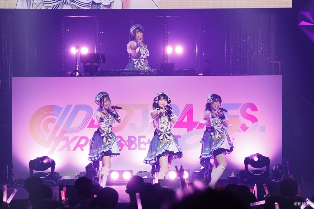 そして間髪入れずに「4Challenges」を披露。Photon Maidenの曲は本当にリアルなクラブサウンドだからこそ、いわゆる普通の“アニソン”のようなコール&レスポンスが入れにくかったりもするのだが(入れにくい、というよりもその必要性があまりないが正しい)それでも隙を見て、声出して盛り上げてくれるディグラーの逞しさ、頼もしさを感じた。そのくらいに「Bang! Bang! Bang!」の声が出ていたし、合いの手などを入れずとも彼女らのダンスパフォーマンスなど、観客側もPhoton Maidenをどう楽しむべきかを理解している人が、以前よりも増えた印象である。