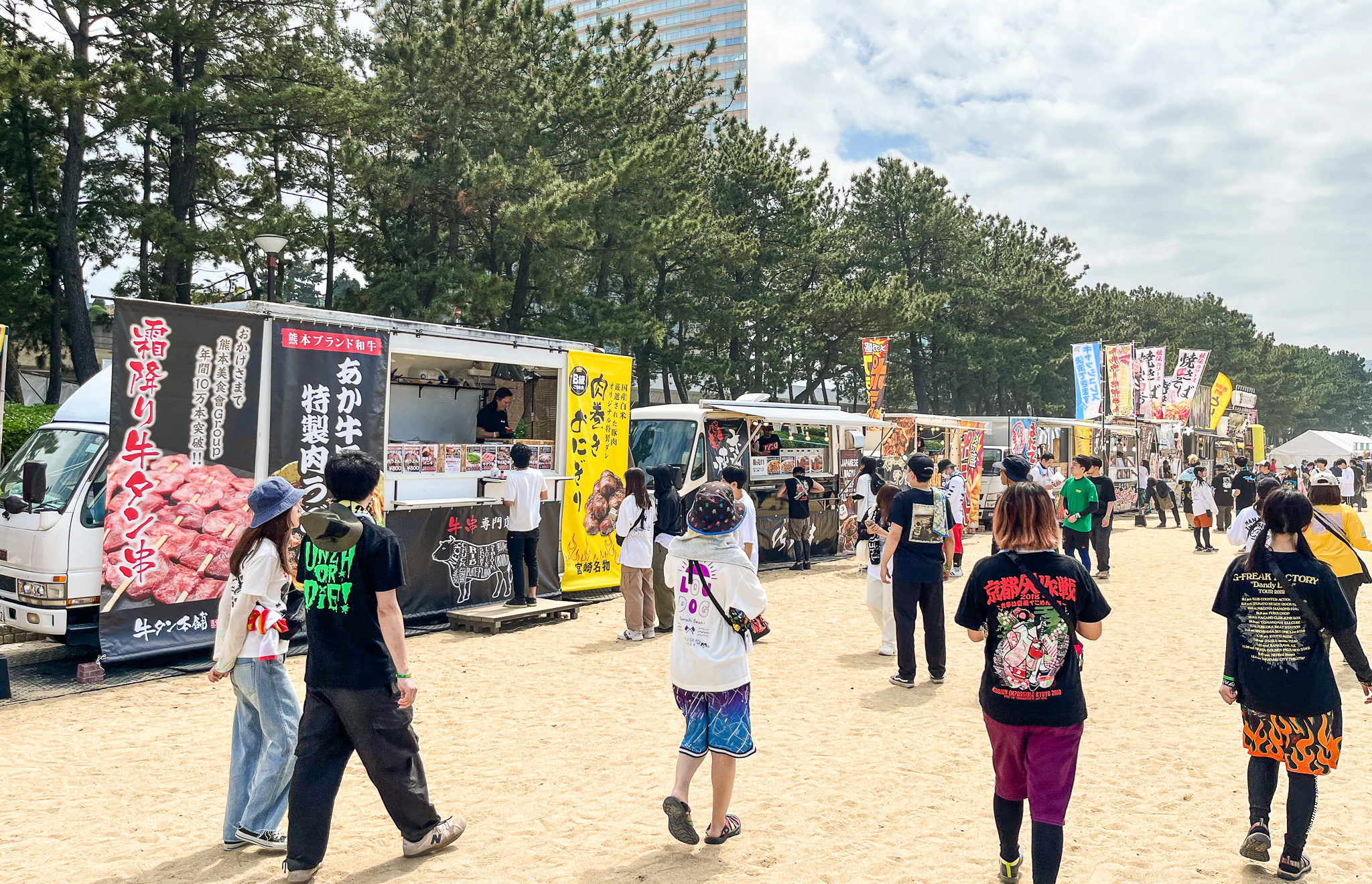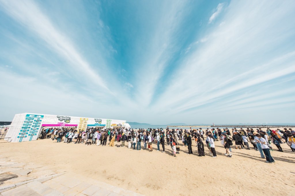 会場にはビーチ沿いにずらりとフードトラックが並び、多彩なフェス飯で観客の空腹を満たしてくれた。焼きそばに唐揚げ、ポテトフライにリンゴ飴にチュロス……etc。波音を聞きながら楽しむ食事はまるで海の家にいるような感覚もあって、ライブで疲れた体には「チル」感がちょうどいい。ドリンクにはMAN WITH A MISSIONとタッグを組んだことでも話題となったクラフトビール「BREWDOG」も登場。バンドをイメージして作られただけあって、ブースはつねにたくさんの人で賑わっていた。