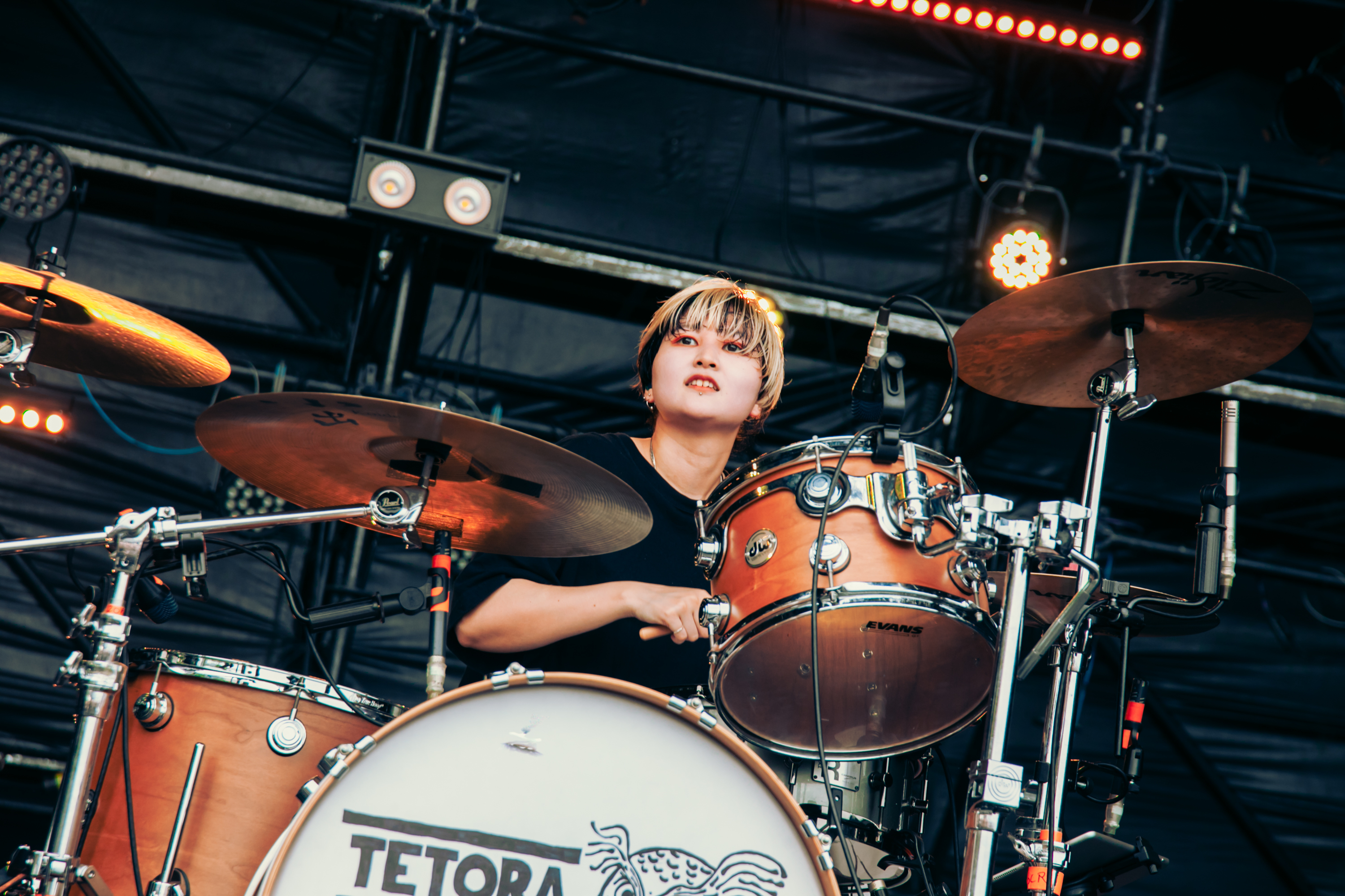 「思いっきりハメ外して! 普段ため込んだもの放出して、思いっきりバカになって帰ってくれ!」。TETORAはさらなる上昇を求め「バカ」「嘘ばっかり」など、タイトなバンドサウンドで初出演の『TRIANGLE』に確かな軌跡を残していく。「全部全部見逃さないで! 目離さないで!」と、芯がぶっといギターをかき鳴らし、心の奥底から感情をむき出しにしていく。「さらにカッコ良くなって、またここに帰ってきます!」。念願だったイベントへの出演があまりに嬉しかったのか、駆け足でライブを終えてしまい大幅に時間が余り、予定外の楽曲を複数披露する、ファンには嬉しいハプニングも飛び出した。