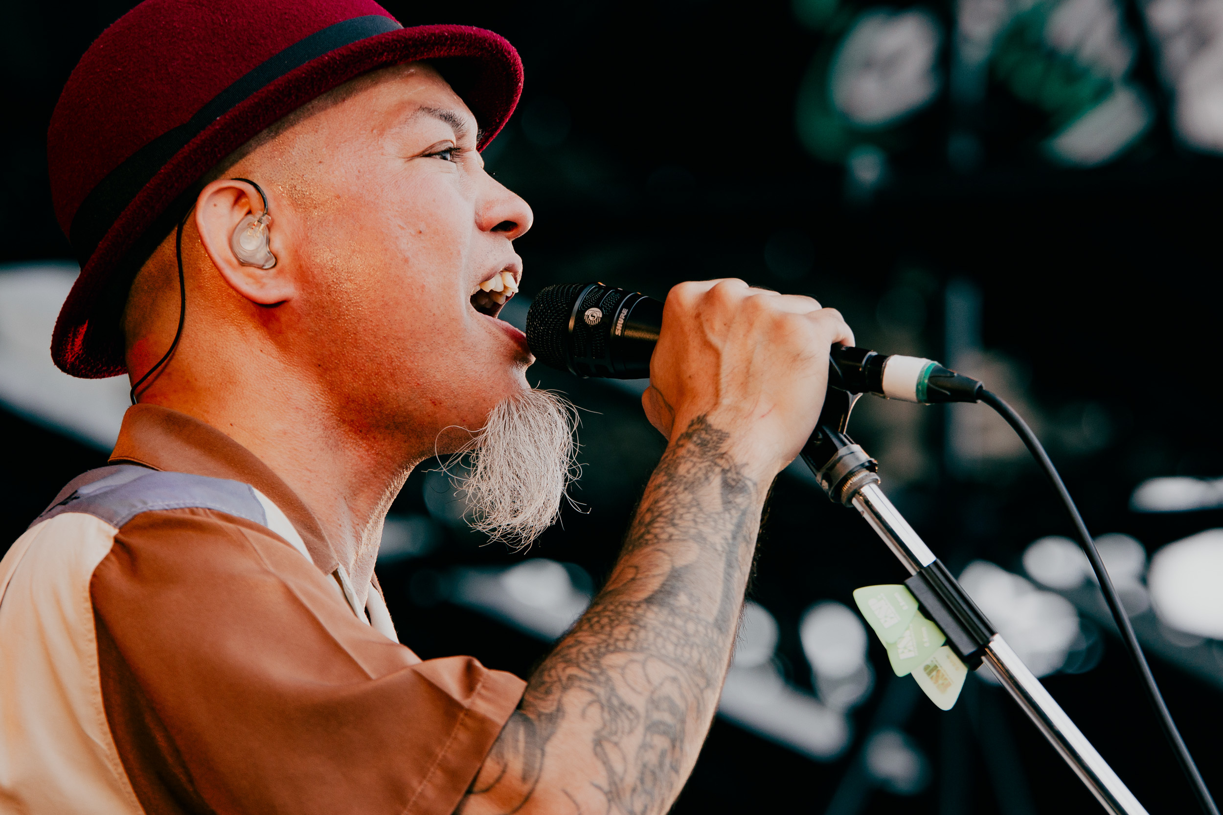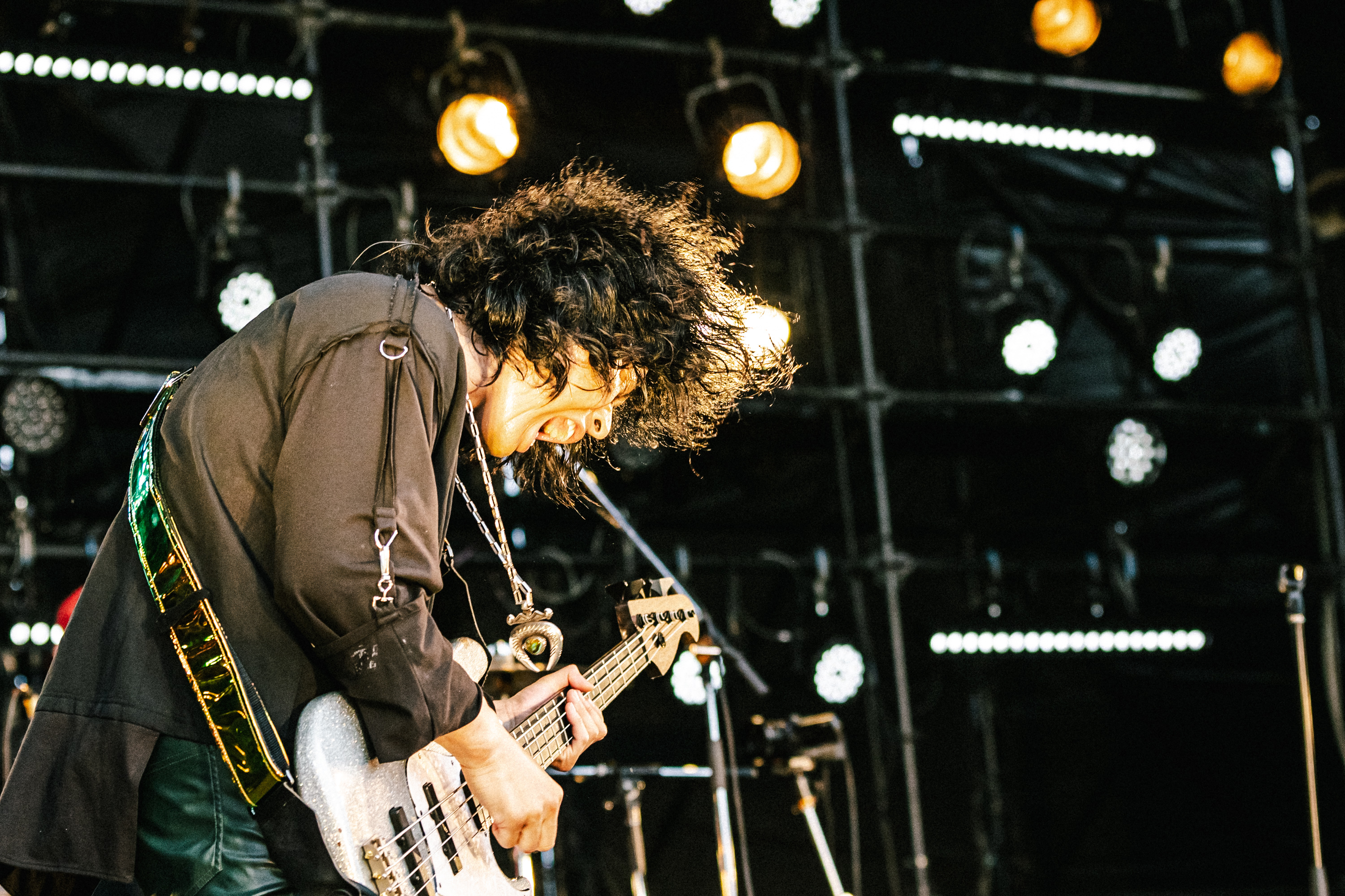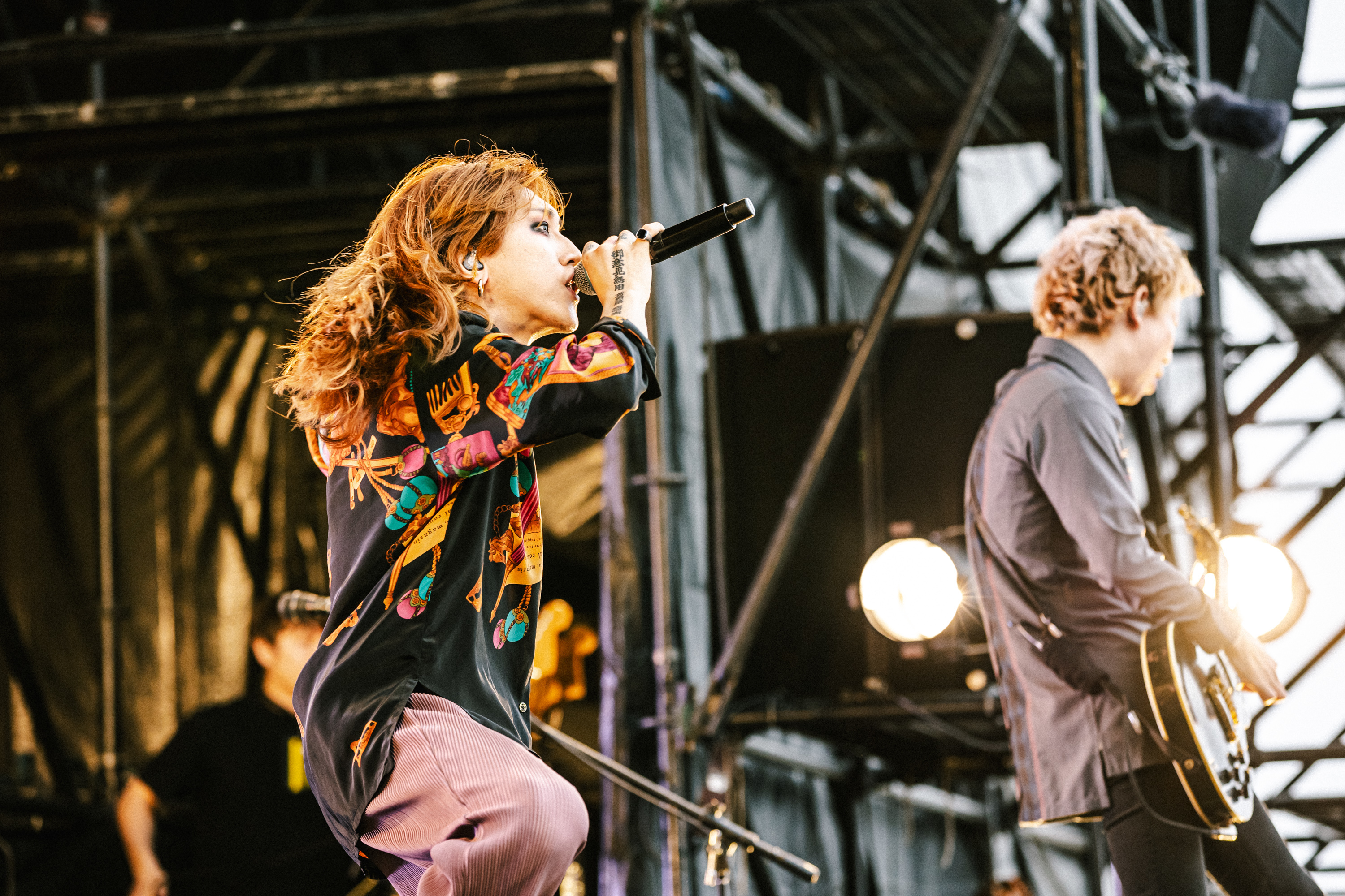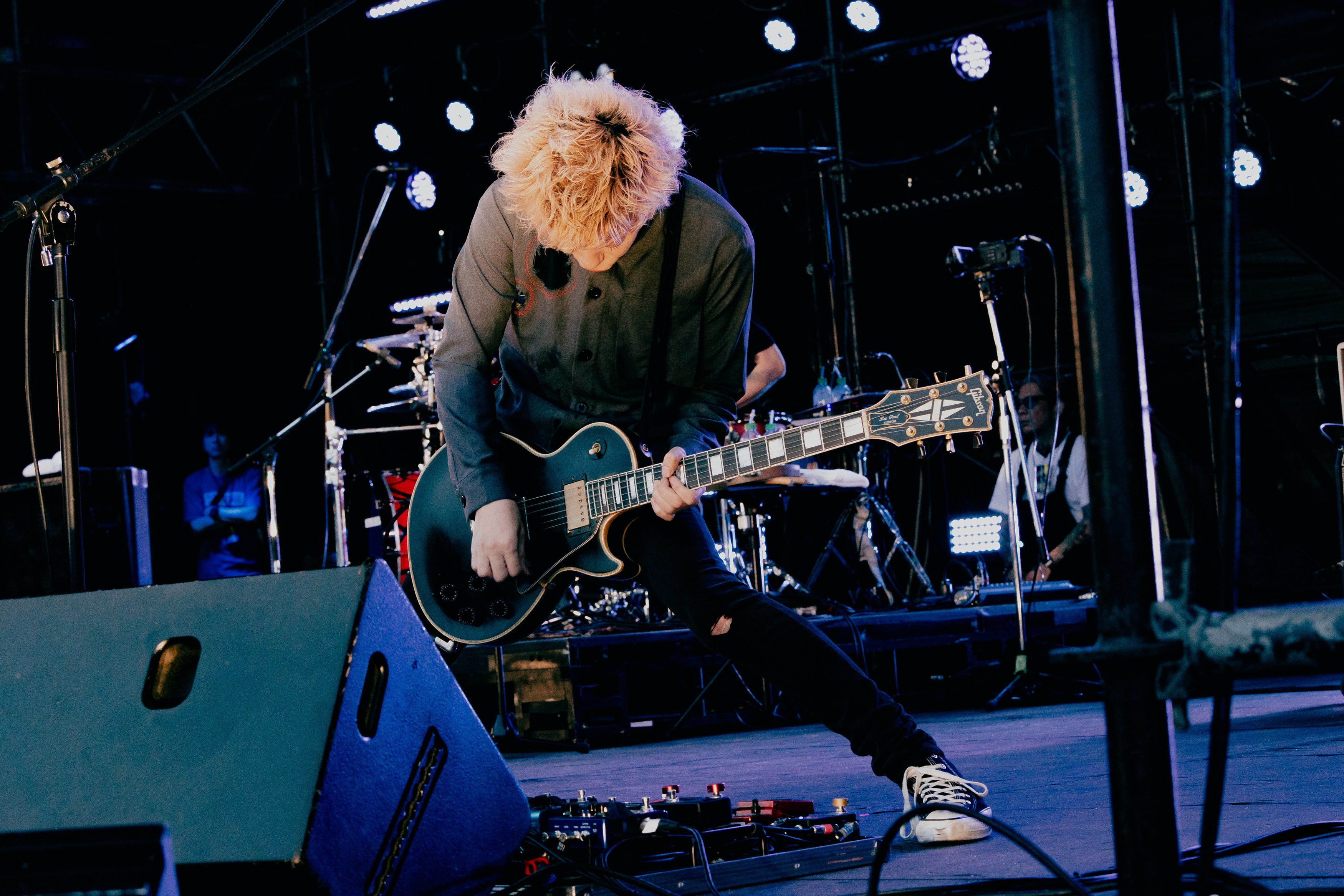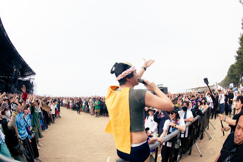 「今日のオレたちのライブ、最高なんで!」、Makiは声高らかに勝利宣言。いつものように缶ビールをマイク越しにプシュっと開けるも、その音が野外のビーチ会場にとんでもなく似合っていて、それだけでも会場から歓声が。「良い景色作ろうよ!」と「斜陽」「虎」などシンプルで、でっかいバンドサウンドでフロアを沸かす。真摯に言葉を、音を届けたい、その前傾姿勢な想いに誰もが夢中になって魅入っている。「もっと気持ち良くなりたい人しかおらんよね?」と、新曲「Record Dogs」で感度はさらに上昇。