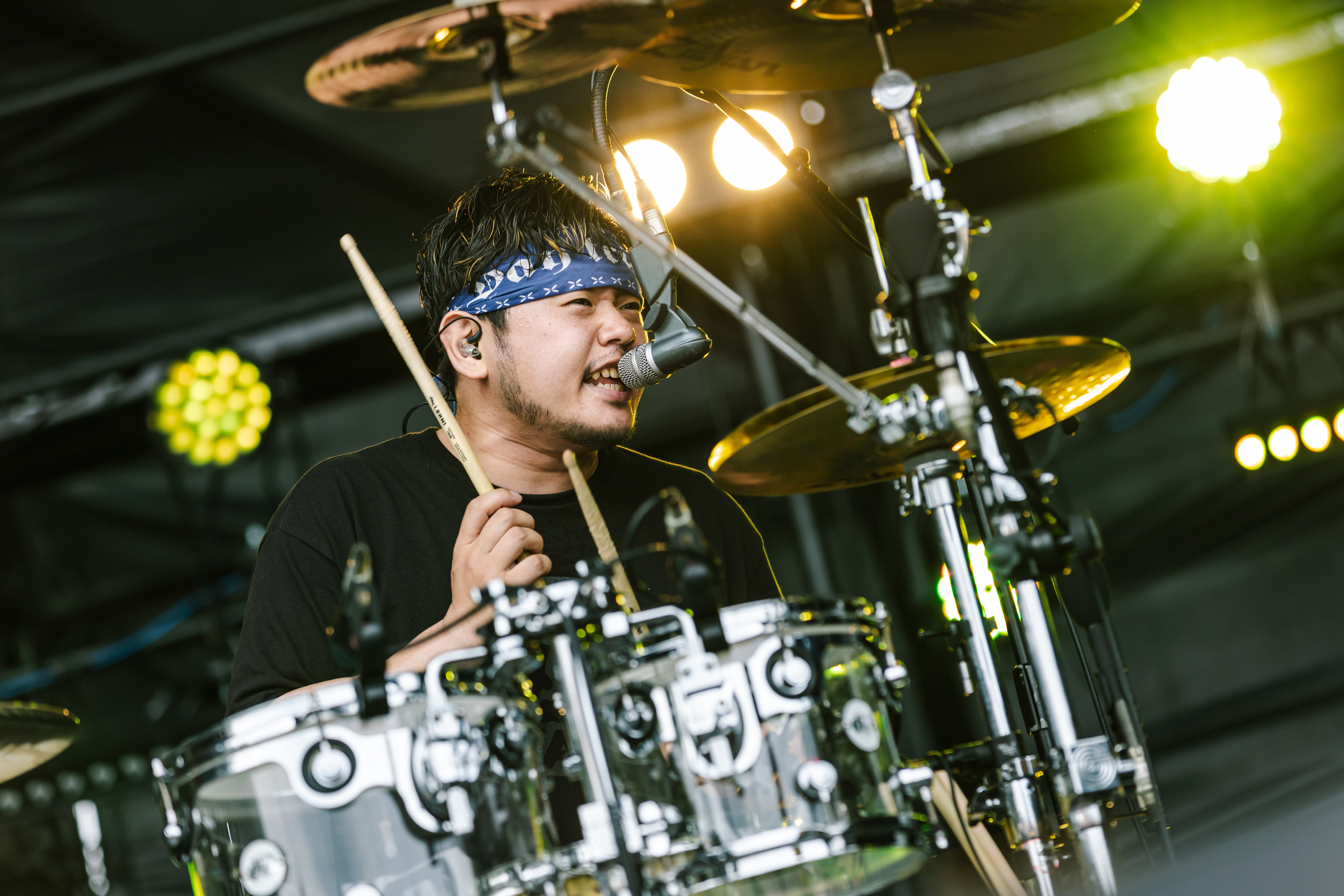 イベント後半、dustboxは「Riot」からさっそくキラーチューンを投下し、ステージ前方が霞むほどのドでかい砂嵐を巻き起こしていく。キレ味抜群な「Try My Luck」のタフさに気圧されかけるも、観客は大きなコール&レスポンスでバンドの音に応える。激しく打ち込まれるビート、ハイトーンボイスにソリッドなギターサウンド、テクニカルなベースライン。脳みその気持ちいいところをずっと突いてくるショートチューンの連続。新曲「To All My Friends」など、「これこそまさに!」なサウンドに喜びの歓声が止まらない。