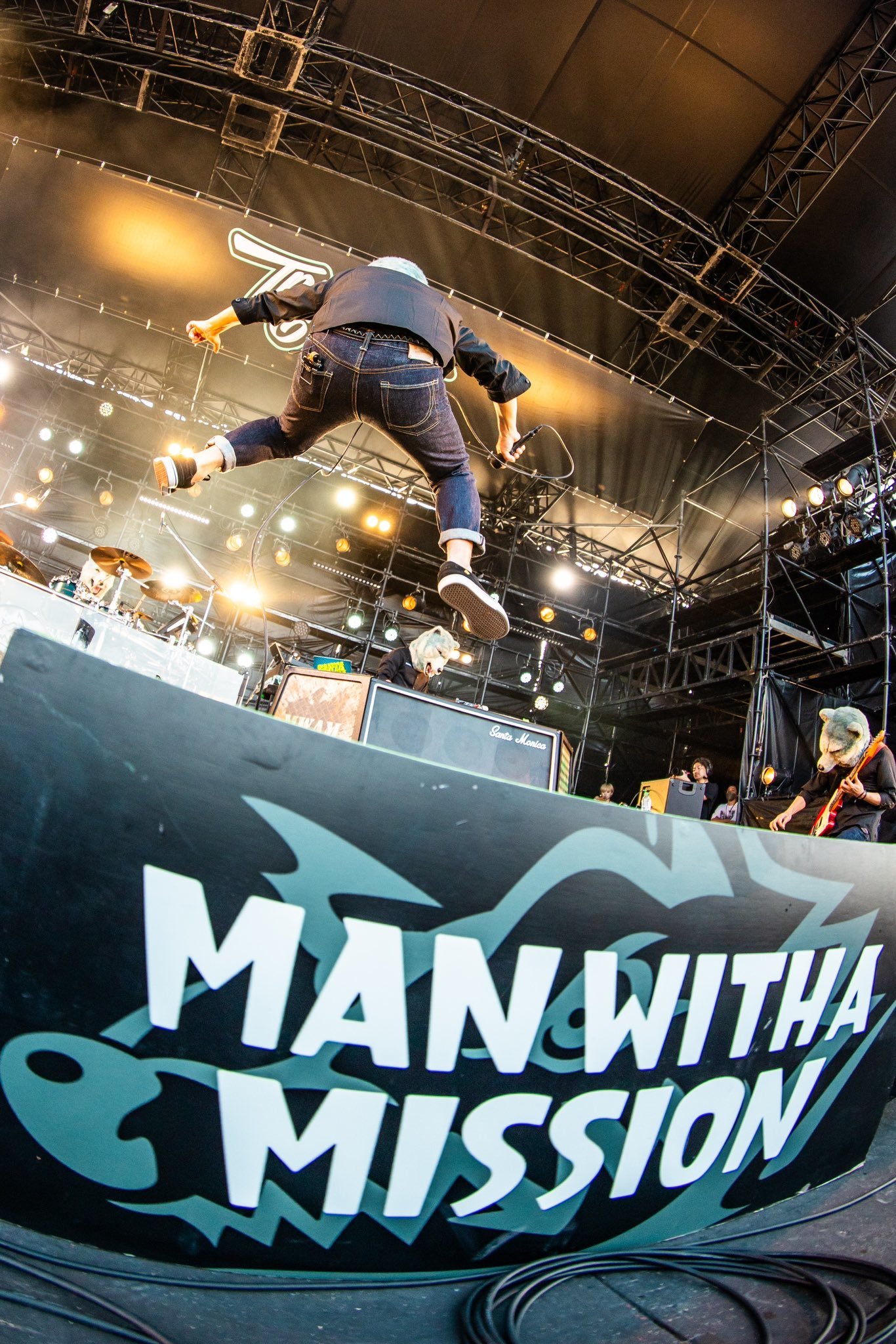 大歓声に迎えられながら登場した、MAN WITH A MISSION。「Raise your flag」に始まり、「FLY AGAIN」で一気にオーディエンスの心をひとつにすると、ビーチが波のように揺れるは揺れる盛り上がり。「コンナ、クソ暑イ、ロケーションニ 呼ビ ヤガッテ!」とやっかみつつ、究極の生命体なのでなんのそのと言わんばかりに灼熱のステージをぶちかます。閉鎖感のある、つまらない毎日に感情をぶちまけるトリガーとして音楽があると切り出し、「INTO THE DEEP」からの「Take What U Want」のラストに、しばらく拍手と声援がやまなかった。