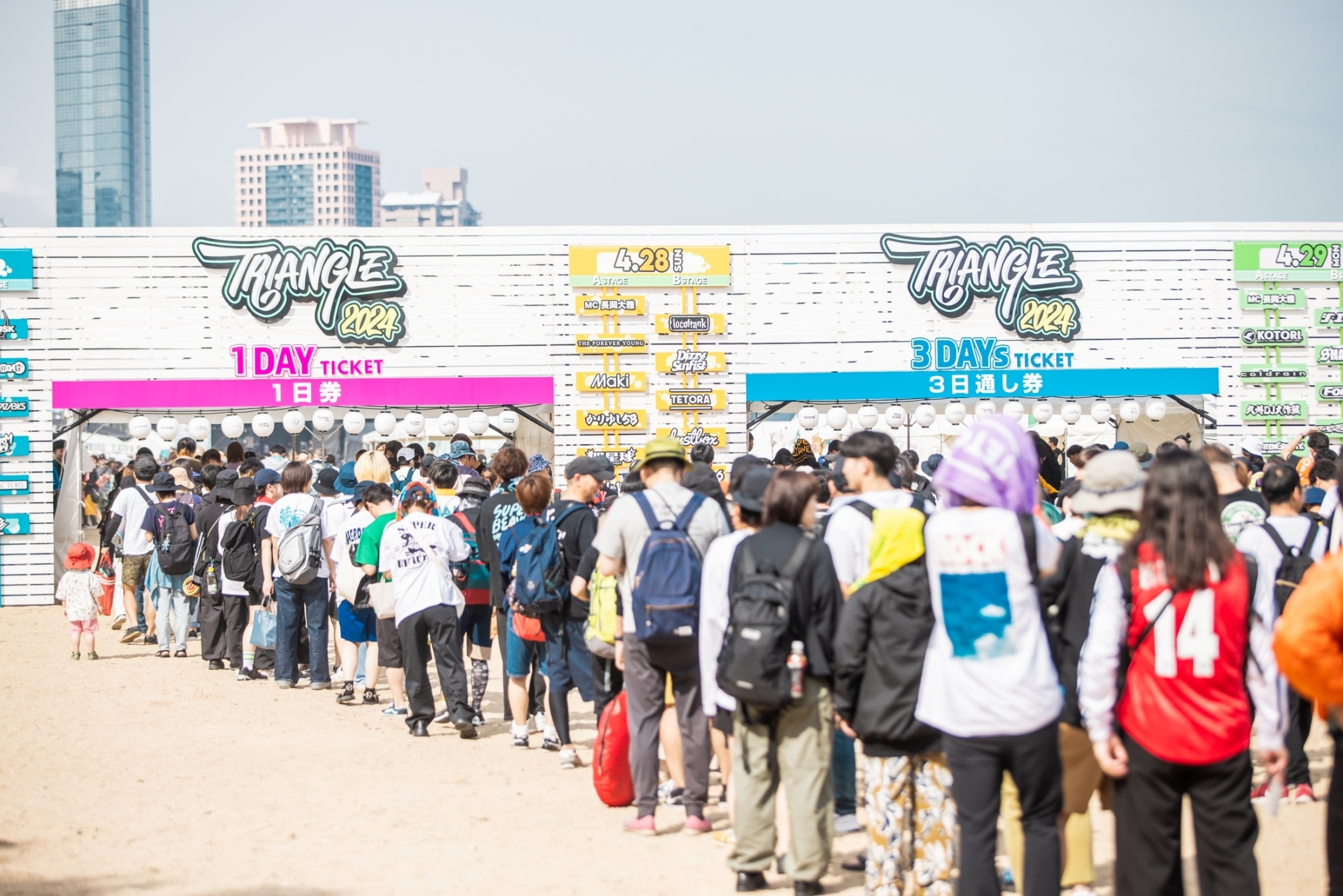 2024年4月27日(土)、28日(日)、29日(月・祝)の3日間に亘って、福岡・シーサイドももち海浜公園地行浜ビーチ内特設ステージにて、野外音楽フェス『TRIANGLE 2024』が開催された。同イベントは、「主催者・出演者・お客さんの全てが楽しめる場所を作りたい」 という思いで2001年に初開催され、九州各地を回るイベントとしてスタート。2016年より野外イベントに形を替え開催されてきたが、2020年より新型コロナ等の事情により、例年のような形での開催を断念することに。