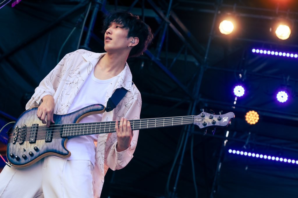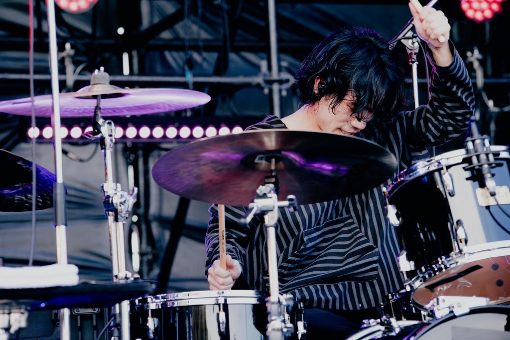 「Snatch Away」から「In The Deep」「Blue」「Pacific」と畳み掛けたKUZIRA。メロディの美しさと壮大な力強さがロケーションとの相乗効果もあいまって、みるみる熱気をまとっていく。高まりきった気分をぎゅっと凝縮して、今度は「The Weak」をじっくりと聴かせた。そんな心地いいムードから「Everywhere You Look」で急転、性別も年齢も関係なしにフロアがごちゃまぜに。末武竜之介(Vo.Gt)は『TRIANGLE』のライブハウスツアーに参加した時から待ち望んだステージであったと明かし、「この曲作った時、こんな景色を想像してたわ」と披露された「Backward」で、強く握りしめられた拳が勢いよく青天を突く光景は圧巻だった。