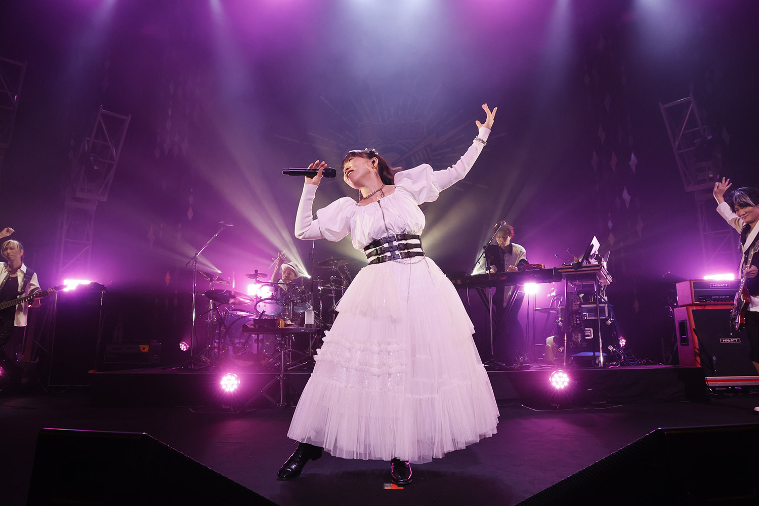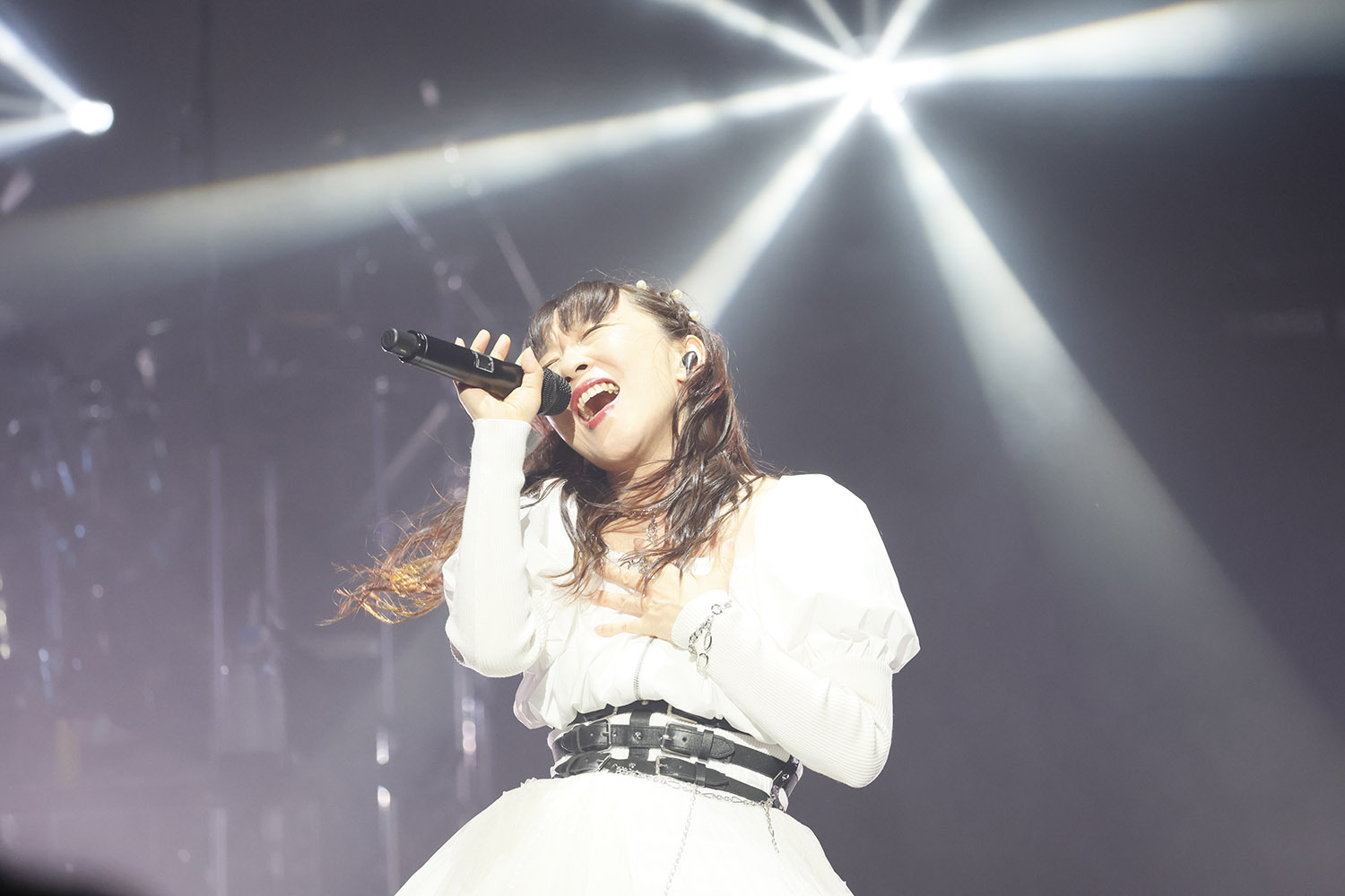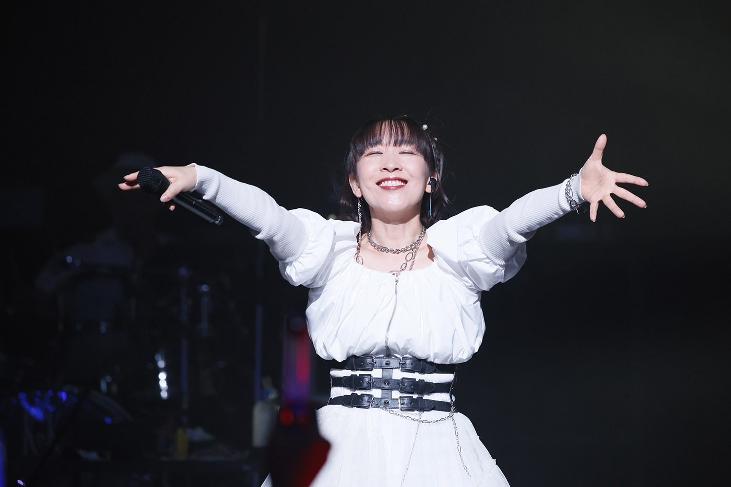 そんなかけ声と共に始まったアンコールナンバーは、まさに生き残る意思の歌「SURVIVE」(劇場アニメ『K SEVEN STORYS』OPテーマ)。atsukoのパワフルなシャウトに合わせてファンもコール&レスポンスを送り、クライマックスでは「みんな声を一緒に重ねてほしい」と客席にマイクを向けてファンの声を受け止め、さらにバンドメンバーそれぞれにもマイクを向けてシャウトしてもらい、ラストは囁くような「ありがとう」で締めくくった。