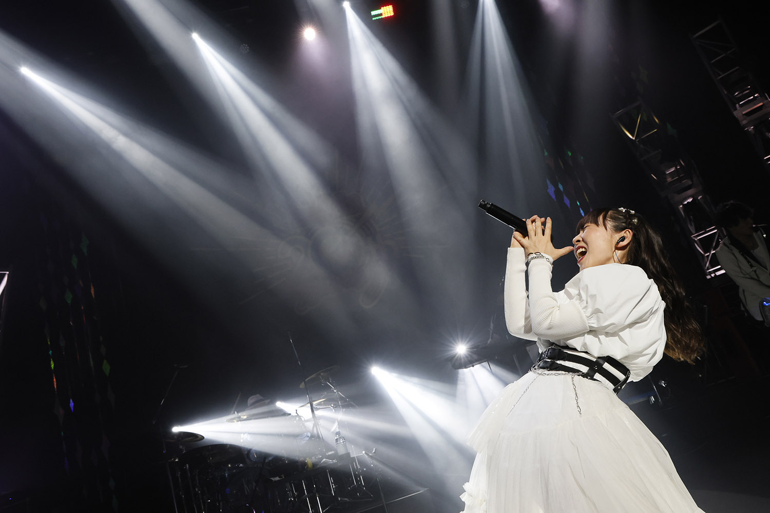幕開けはライヴ初披露となる最新デジタルシングル「Fly Alive」(パチンコ機【Pフィーバー革命機ヴァルヴレイヴ3】搭載曲)。力強いアカペラからの激しいメロディと共に熱唱し、腕を振り上げながらファンからの熱いコールに応えていった。