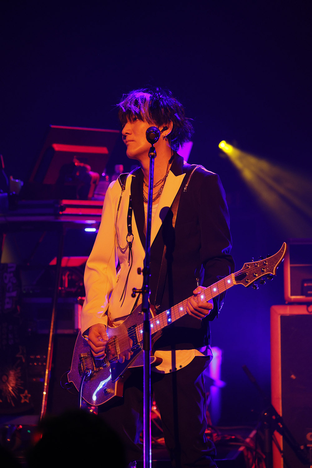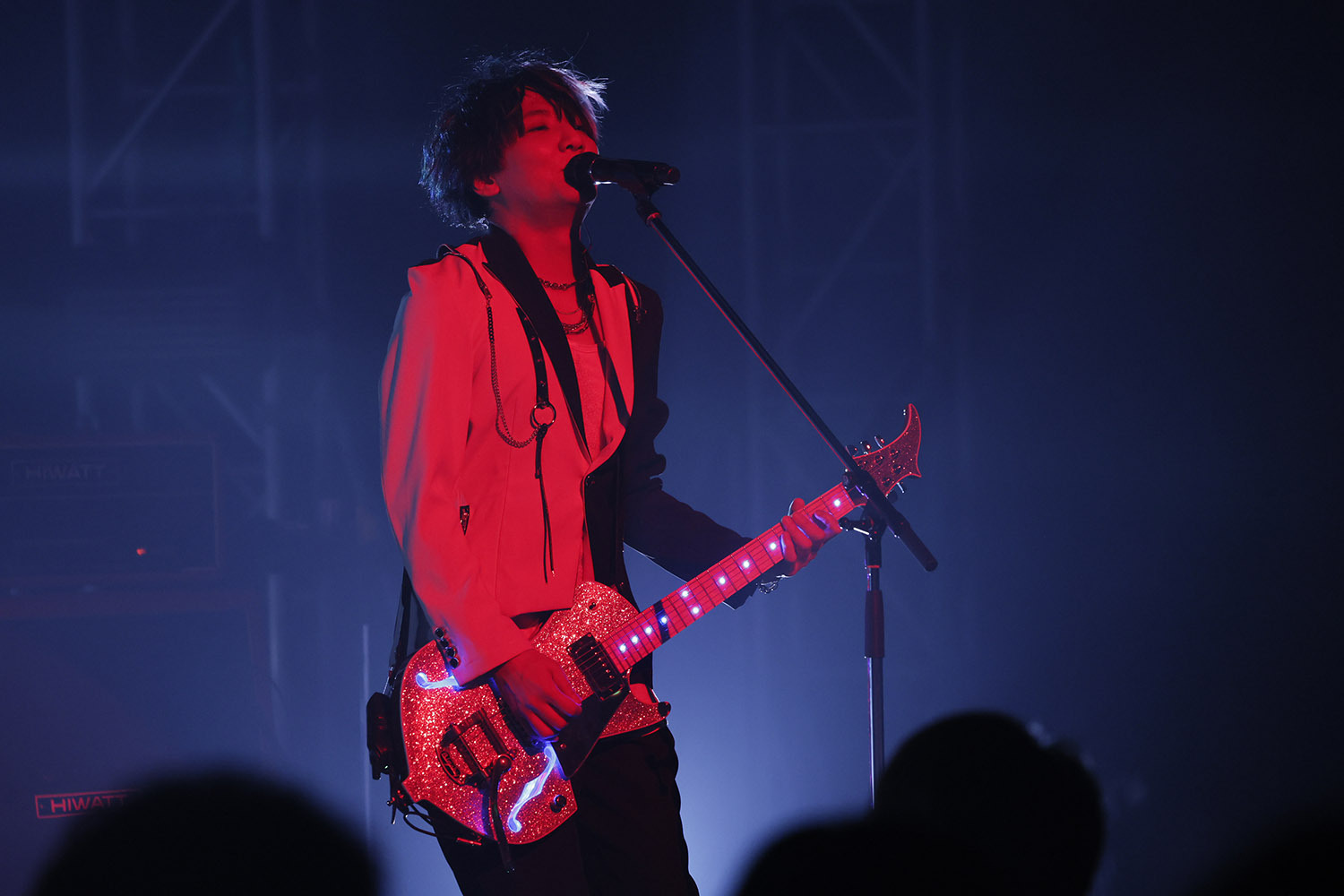 続いては一転して静かなピアノソロとアカペラから始まり、激しいロックへとなだれ込んでいく「SEVEN STORIES」(映画『K SEVEN STORIES』イメージソング)。青と白のライティングでステージが染まる中、客席に向けてファンのコールを求めながら盛り上がり、ライヴは初っ端からフルスロットルでスタートした。
