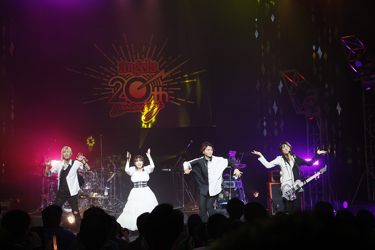 結成から30年、2003年のメジャーデビューからは昨年5月で20周年を迎えたアーティストユニット・angela。数多くの20周年プロジェクトのシメとして、2DAYSライヴ「angela 20th Anniversary☆THE『〆』」が5月24~25日にかつしかシンフォニーヒルズで開催された。20年間の活動で送り出してきた数多くの曲から選りすぐりのナンバーを披露して、ファンと共に熱く楽しく盛り上がった同ライヴの千秋楽・Day2の様子をレポートしよう。