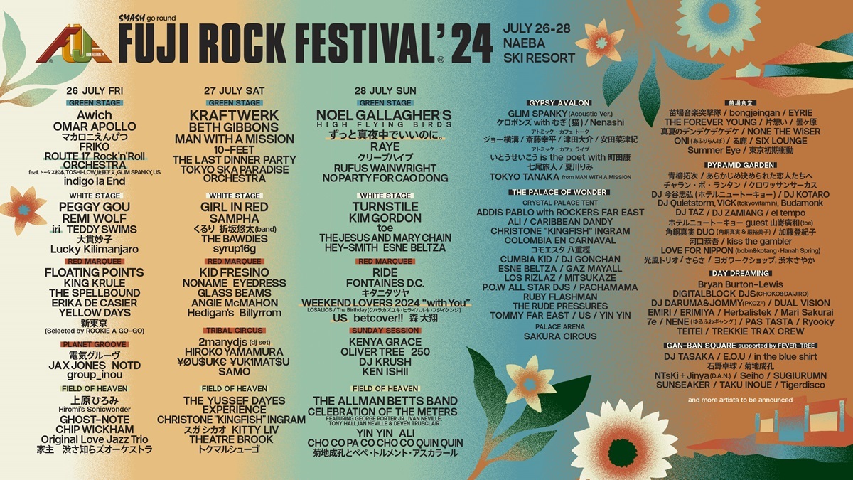 7月26日(金)、27日(土)、28日(日)に新潟県湯沢町 苗場スキー場で開催される『FUJI ROCK FESTIVAL’24』(以下、フジロック)の第7弾ラインナップとステージ割が発表された。