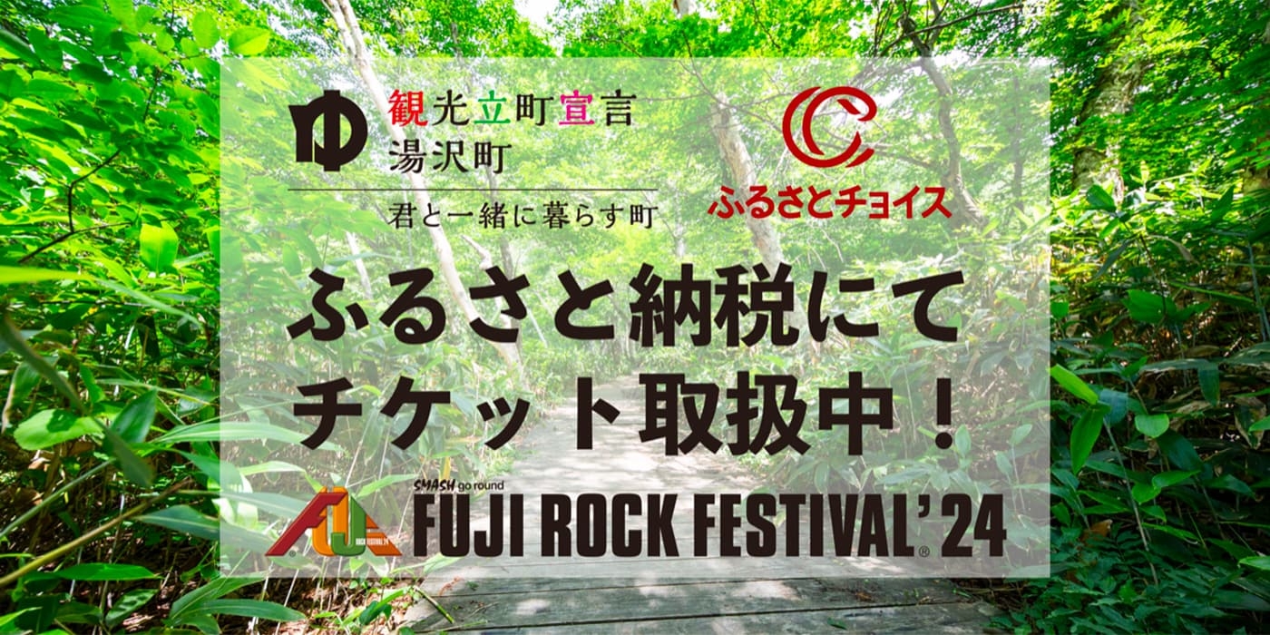 1999年に開催地を苗場に移して25回目の開催を迎える今年、開催地の人々への感謝の気持ちを込めて、チケットを買うことで湯沢町に貢献できるふるさと納税の利用はいかがだろうか。湯沢町へのふるさと納税の返礼品として提供する『フジロック’24』のチケットや関連商材を通じて、湯沢町に寄せられた寄付は、『フジロック』や「フジロックの森プロジェクト」をはじめとした同町の観光や森林環境整備、災害に強いまちづくりなどに活用され、町の発展に繋げられる。返礼品など詳しくはオフィシャルサイトを確認してほしい。