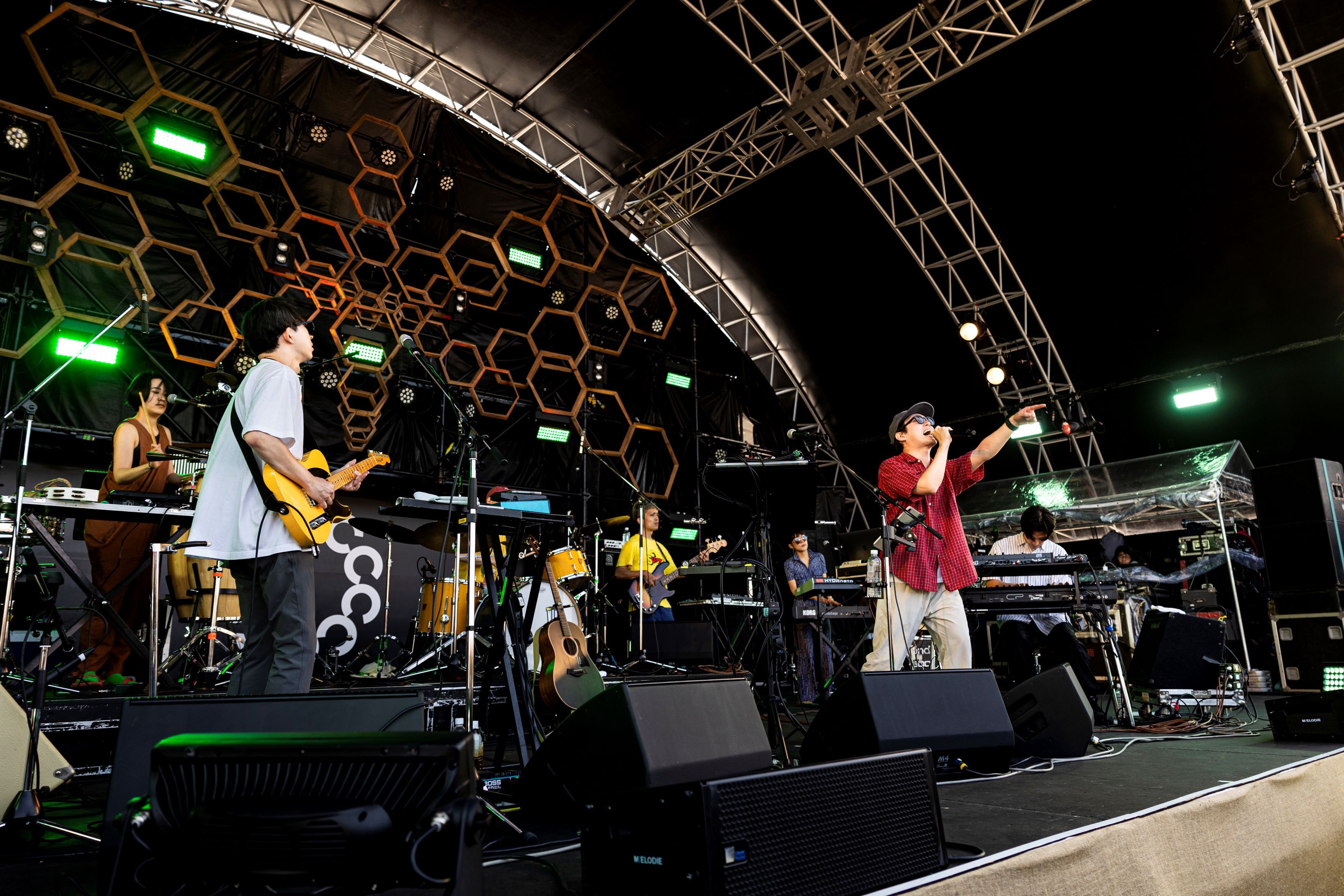 去年のMikan Hayashi(ゲシュタルト乙女)、落日飛車のように海外からの初出演組に出逢えるのも『CIRCLE』の良きところ。今年はタイからYONLAPAがKOAGARI STAGEトップバッターで登場。MCでは英語でコミュニケーションを取るが、個人的に英語を全て理解できないとはいえ、気持ちを込めて楽しそうに嬉しそうに話してくれるので、自然に想いが届く。終盤の「Last Trip」はエモーショナルさも感じる楽曲であり、バンドの日本の観客へ絶対に届けたいという強い気持ちを感じた。いわゆる海外バンドだからこそ、余計に感じたのかも知れないが、私同様に観客全員が凄く詳しいわけではなかっただろう。この日に初めて聴いた人もいただろうが、何しろ音を楽しもうという真っ直ぐな人ばかりだった。理想的なフェスでの楽しみ方である。2日通して、観客からは誰を観に来たみたいなお目当て感を良い意味で感じず、全ての音楽をフラットにMAXに楽しんでいた。あるようで中々無い風景なので、観客が全幅の信頼を『CIRCLE』に寄せている事が再認識できた。それと『CIRCLE』は穏やか緩やかなイメージもあるのだが、意外と出演者たちはYONLAPAも含めて、しっかりと轟音を聴かせる激しさも持ち合わせている。それも間違いなく興奮ポイントのひとつであった。演奏後、メンバー4人が横一列に並び肩を組み3度もお辞儀をして、その後も手を合わせて観客に感謝を伝えていた姿には感銘を受けた。決して来日ライブは安易な事では無いし、だからこその日本への強い気持ち強い愛を感じられた。
