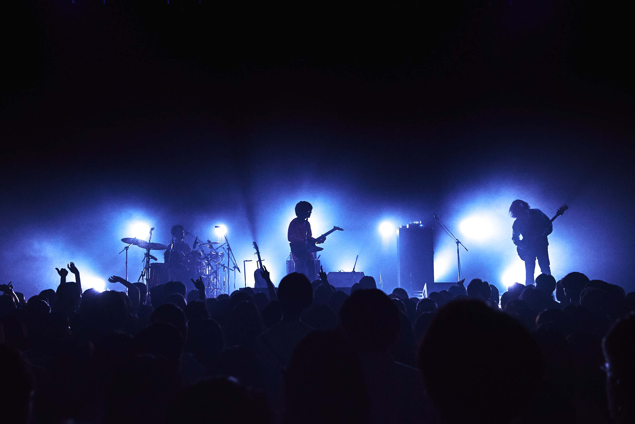 一息ついて、グッズのタオルで顔の汗をひとふき、「このタオル発売中なので是非なんでも使ってください」と急に宣伝。全員が笑顔に包まれ、ほっこりしたMCからのライブ中盤、名曲「嘘じゃない」を披露したあと、崎山の原点ともいえるアコースティックギターに持ち替え「Swim」を披露。オーディエンスとの「泳ぐ泳ぐ」というコール&レスポンスと、歪んだギターと幻想的な照明で浮遊感に包まれ、「国」で繊細かつ情感が織り込まれた歌声に会場全体が釘付けとなった。