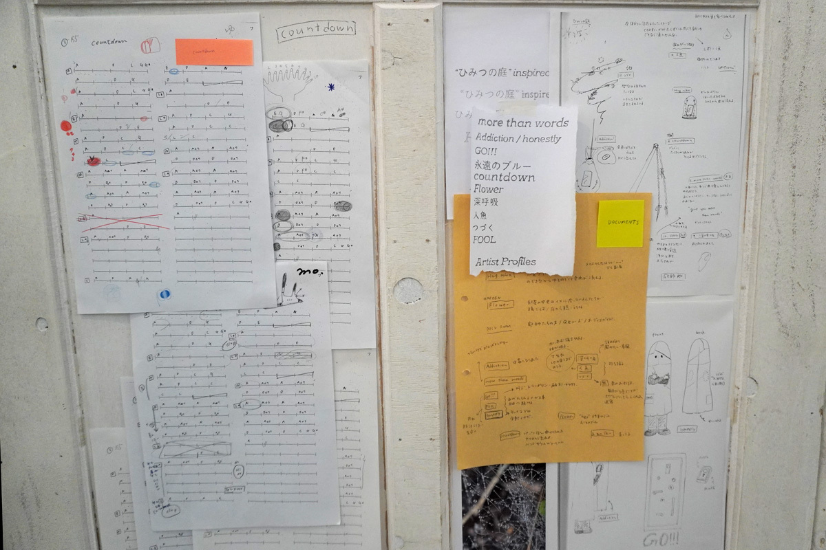 羊文学は、曲を出すたびに変化があり、どこかミステリアスな雰囲気を漂わせる。本展のタイトル”ひみつの庭”は、そんな彼らの不思議な存在感を見事に言い当てている。