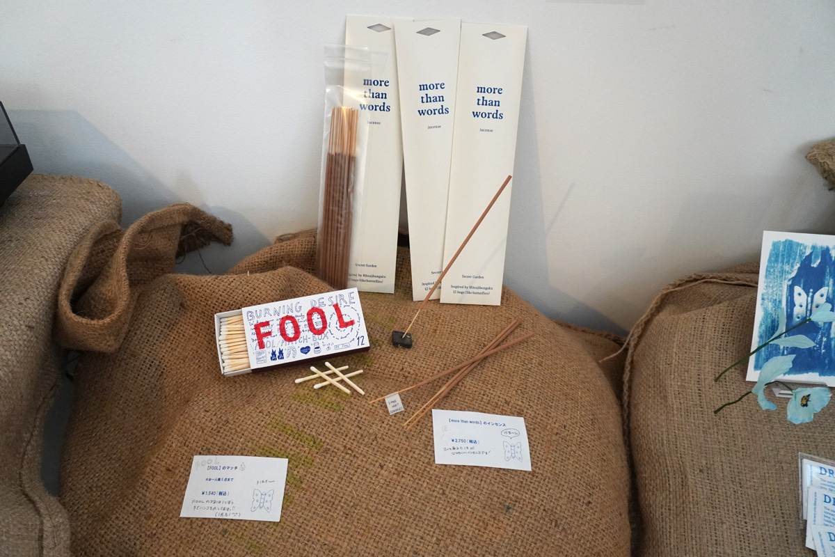 本展は、羊文学に纏わるクリエイティブが形を取り、静かな空気の中で佇む場である。美術品を鑑賞するための場所というよりは、彩り豊かなスタッフやクリエイターたちが務める庭師と観客が共に参加し、時間を共有し、想像力を羽ばたかせる親密な空間、と言えそうだ。会場に流れる音楽や対談音源、楽曲をイメージしたインセンスなども五感を満たし、羊文学の世界に浸る手助けをしてくれるように思う。