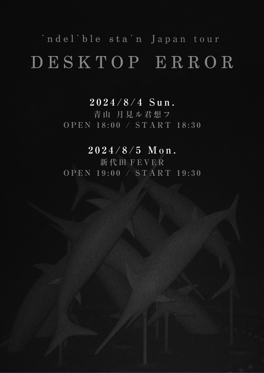 タイのバンドDesktop Errorが8月4日(日)と5日(月)に開催する約11年ぶりとなる来日公演『Indelible Stain Japan tour』に、tricotやHomecomingsらが出演することが発表された。