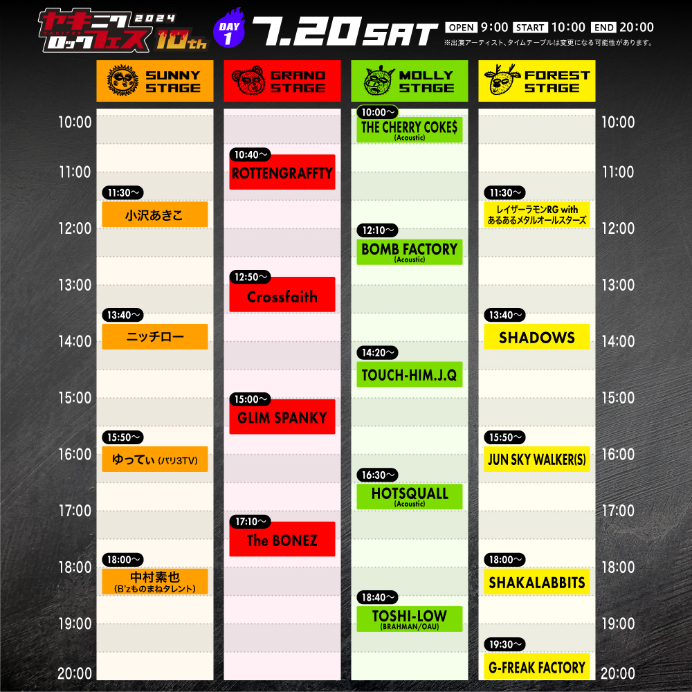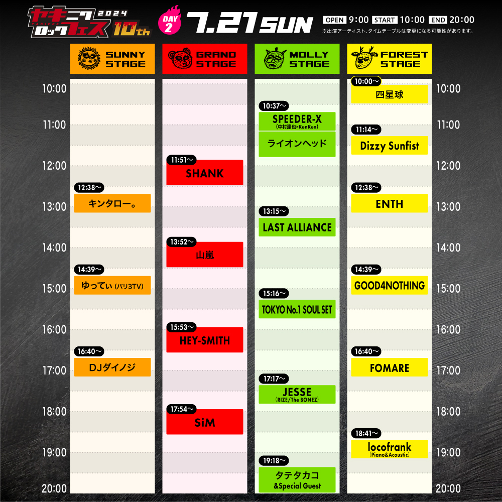 2024年7月20日(土)、21日(日)の2日間、長野県・飯田市野底山森林公園特設ステージで開催される音楽フェス『焼來肉ロックフェス2024』のタイムテーブルが発表された。