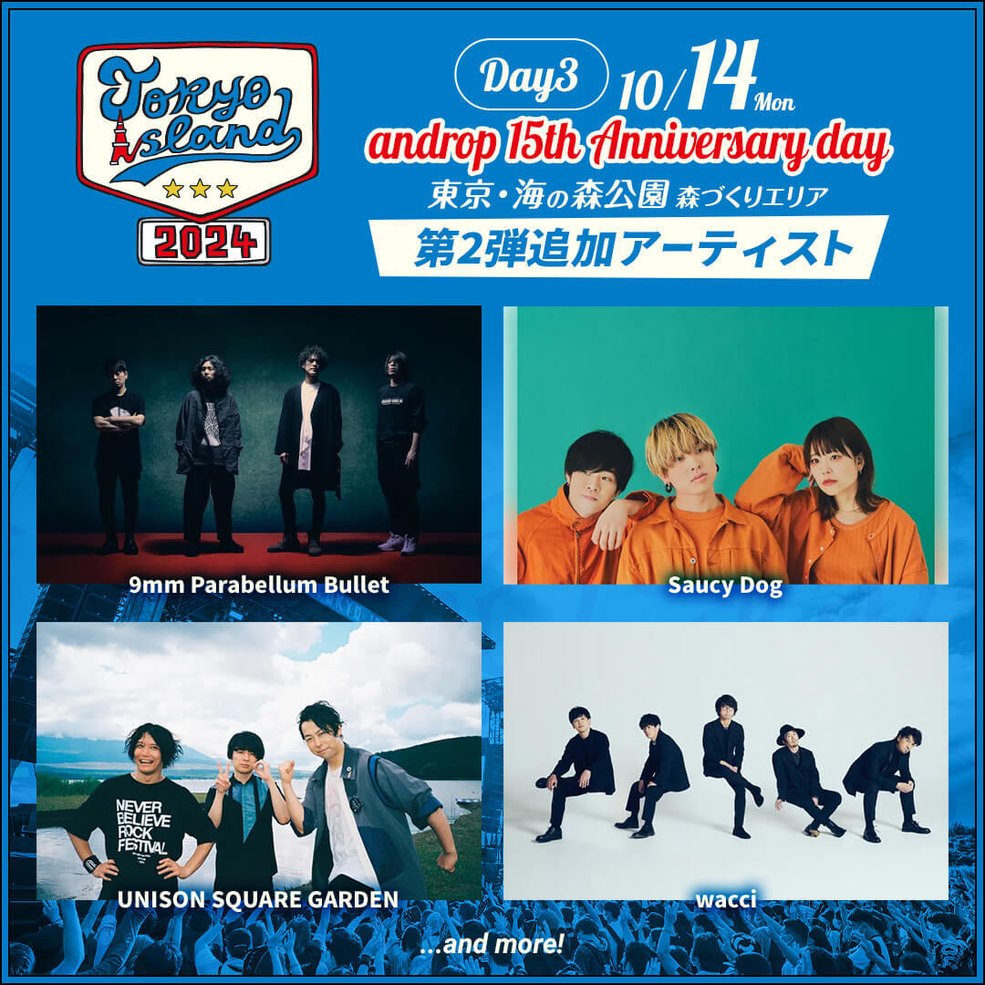 『TOKYO ISLAND 2024』10月14日(月祝)【androp 15th Anniversary day】