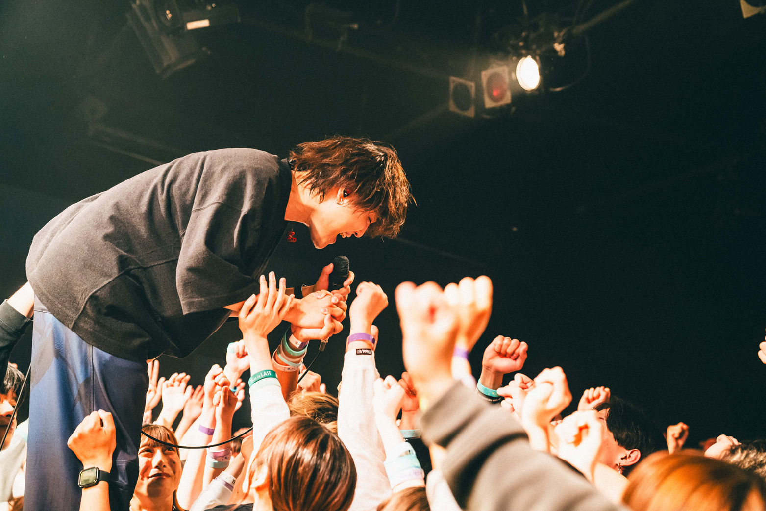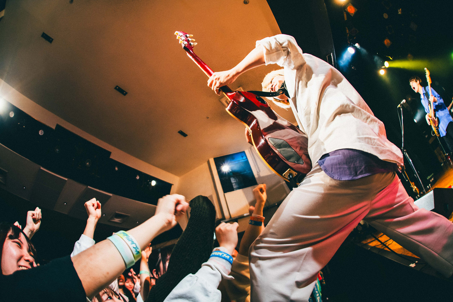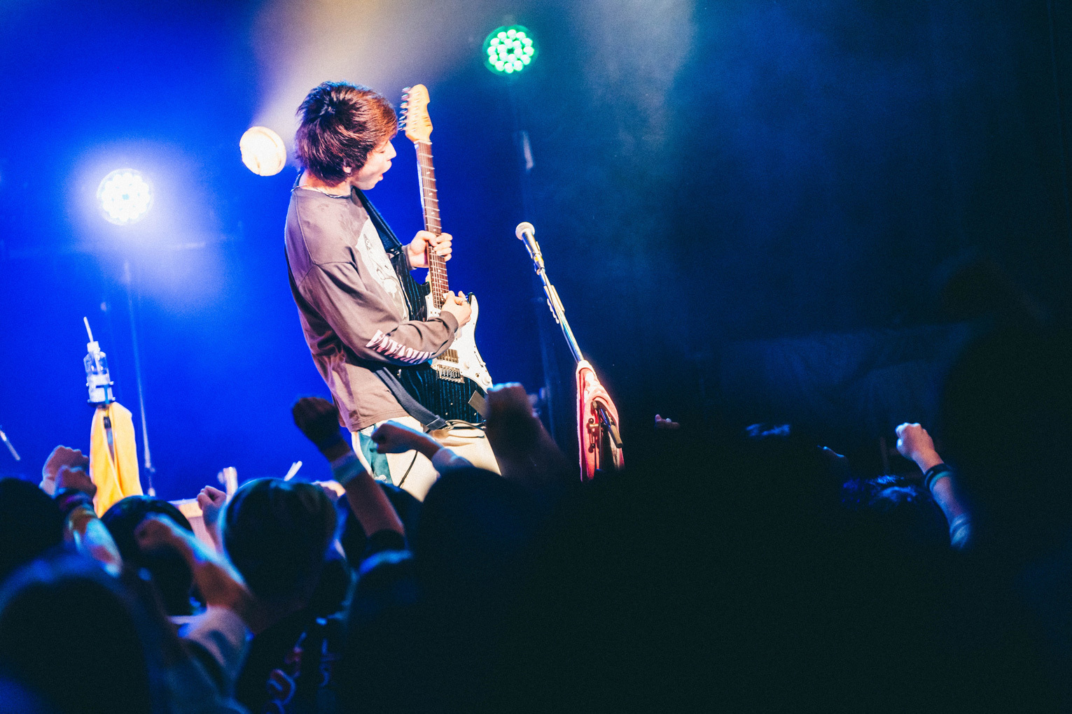 もはや1曲目からワンマンかと思うほどの盛り上がり。とはいえ長丁場であり、オーディエンスに疲れの色が見えたのか、菊池が「もっといこうぜ!」と煽ると、火を点けられたフロアはクアトロの床が揺れるほどのジャンプで応える。続けて「病んでるくらいがちょうどいいね」で人間臭さを肯定し、「カスミソウ」で<ありがとうね>と失恋ソングながら感謝を伝える。バンドからのメッセージを受け取ったフロアは、ずっと手があがり続けていた。