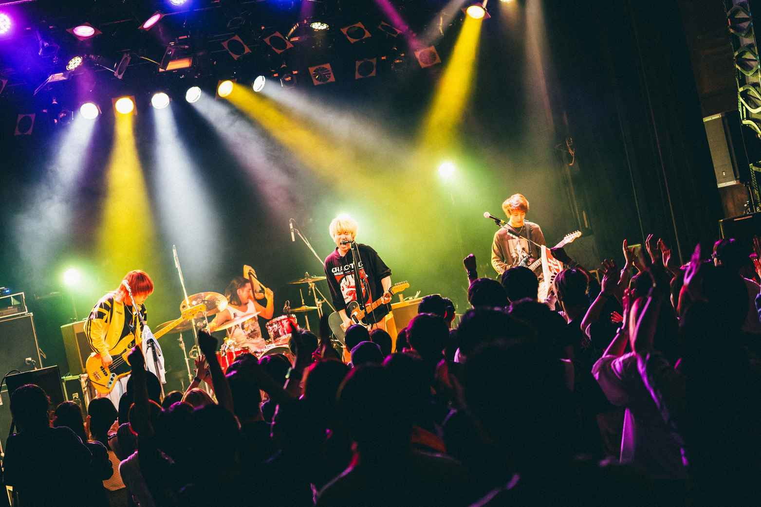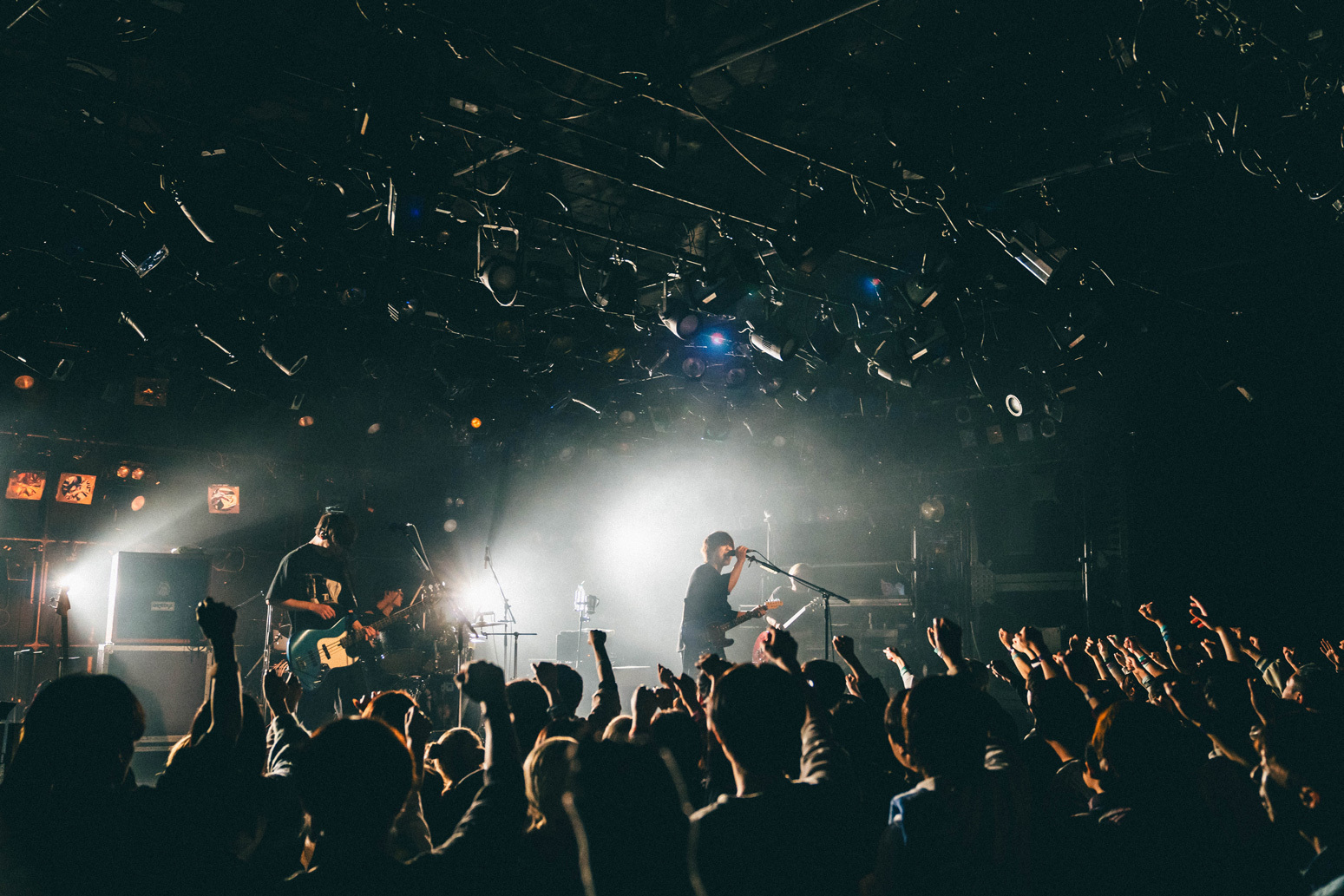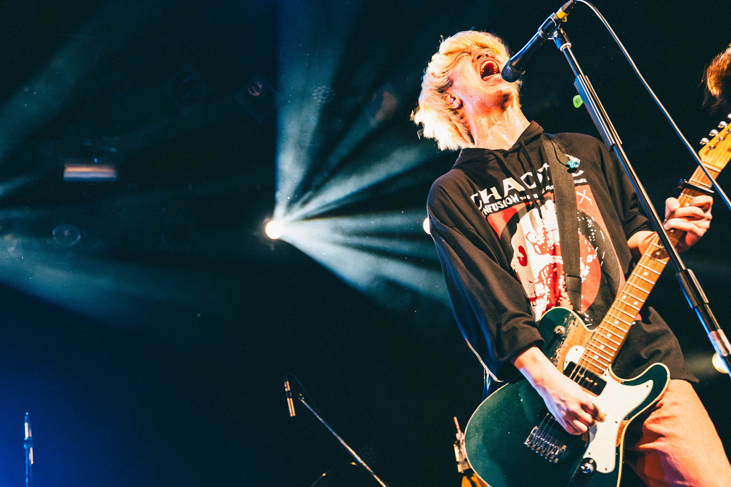 もはや1曲目からワンマンかと思うほどの盛り上がり。とはいえ長丁場であり、オーディエンスに疲れの色が見えたのか、菊池が「もっといこうぜ!」と煽ると、火を点けられたフロアはクアトロの床が揺れるほどのジャンプで応える。続けて「病んでるくらいがちょうどいいね」で人間臭さを肯定し、「カスミソウ」で<ありがとうね>と失恋ソングながら感謝を伝える。バンドからのメッセージを受け取ったフロアは、ずっと手があがり続けていた。