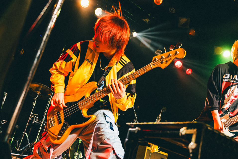 後半は5月リリースの1stフルアルバム『ソフビ』のリード曲「閃光配信」をパンチ力たっぷりに披露。その後も息つく間もなく楽曲をつなぎ、「一緒にライブ作っていこう!」と汗だくでフロアをひとつにする。届けようとするまっすぐなサウンドで、体内の衝動が突き動かされる。ラストパートはさらに勢いを増し、4人全員での歌唱がエモーショナルな「あの子と宇宙に夢中な僕ら」、一番激しく短い楽曲「風鈴」を爆発させた。最初から最後まですさまじい勢いで、現場への愛と信頼をぶつけたBye-Bye-Handの方程式だった。