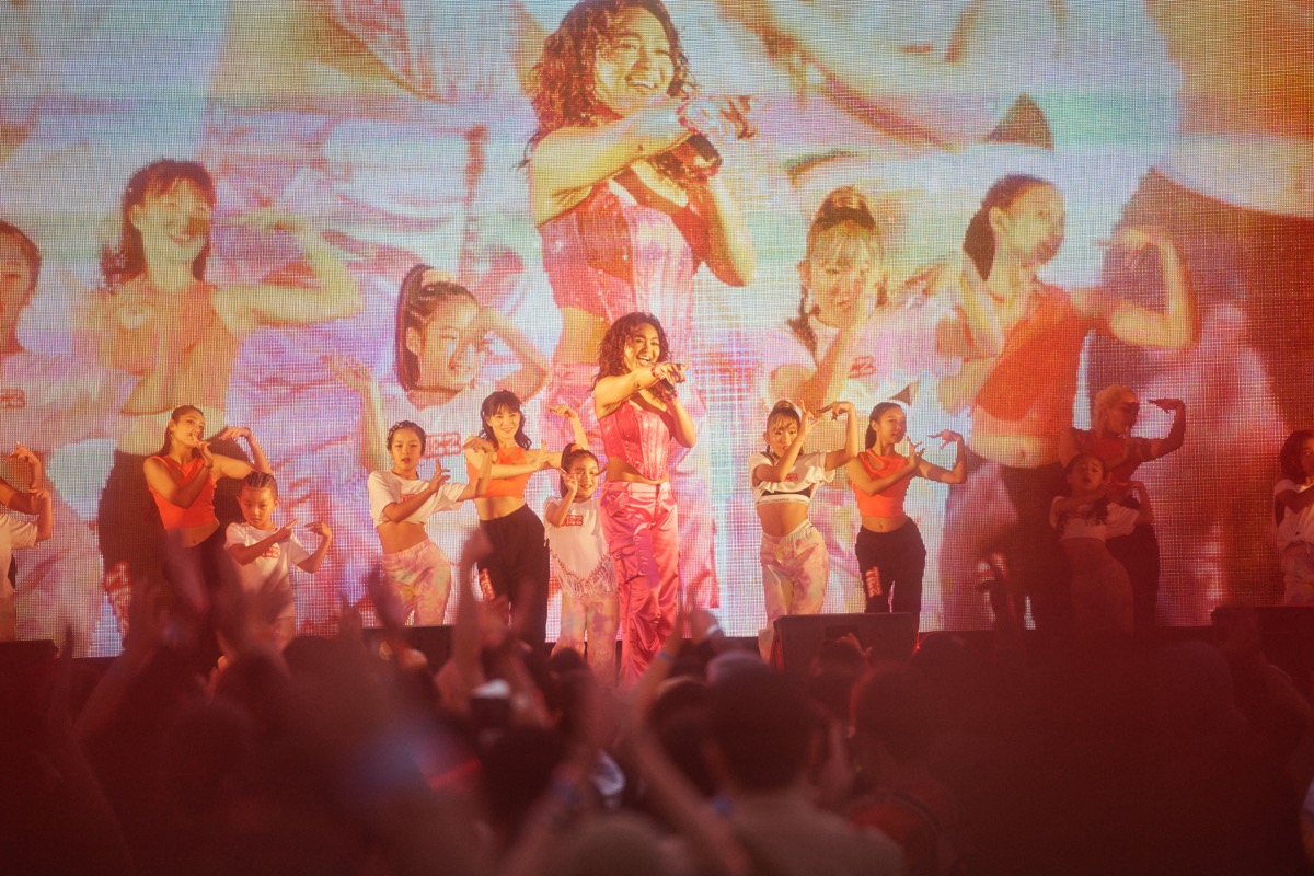 DAY1のトリを飾ったのは、ここ横浜がホームタウン、今年活動25周年を迎えるCrystal Kay。「最後まで楽しんで。⼀緒に歌ってね!」と叫び、「恋におちたら」でライブはスタート。ぎっしりと埋まった観客はのっけから⼤喜びだ。そのまま「hard to say」や「What Time Is It?」等の初期ナンバーのメドレーを熱唱。デビュー25周年を迎える彼⼥ならではのセットリストに客席からは⼤喝采が上がった。そして、最年少は3歳のキッズも含む⼤勢のダンサーを引き連れ、⾒事な⼀体感のダンスも披露。激しいダンスでも全く息のあがらないパワフルな歌声に、会場は⼤きな拍⼿を送る。トリにふさわしい圧倒的なパフォーマンスで、初日のBLUE SKY STAGEを締めくくった。