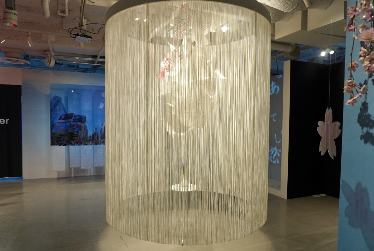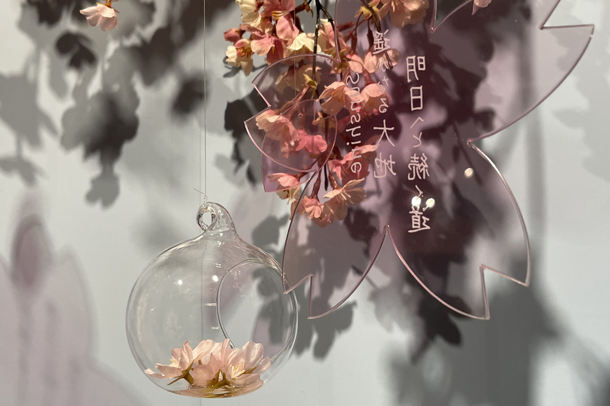 「Scoop」のコーナーにはパパラッチをイメージしたポスターが貼られている。よく見ると「Let’s Flash Photography!」と書かれており、フラッシュをたいて撮影すると歌詞が現れる。「春を愛する人」のコーナーでは歌詞が記された桜のプレートが揺れ、透明の容器に近づくと甘い花の香りが漂う。なお、こちらのフレグランスは「春を愛するフレグランス」として物販コーナーで購入できるので、忘れずにチェックしよう。