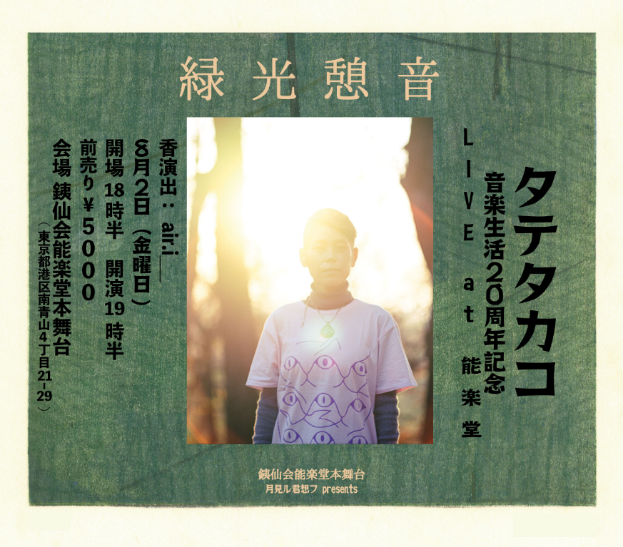 3日目8月2日(金)は、タテタカコが音楽生活20周年記念ライブを行う。また、この日は香演出を調香師のair.i___氏がつとめる。