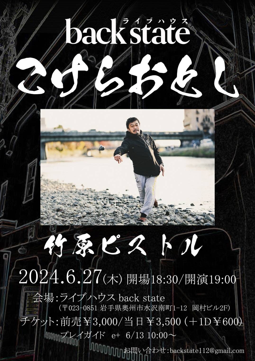 岩手・奥州市にオープンするライブハウス「back state」で、6月27日(木)のこけら落とし公演が決定。竹原ピストルの出演が発表された。