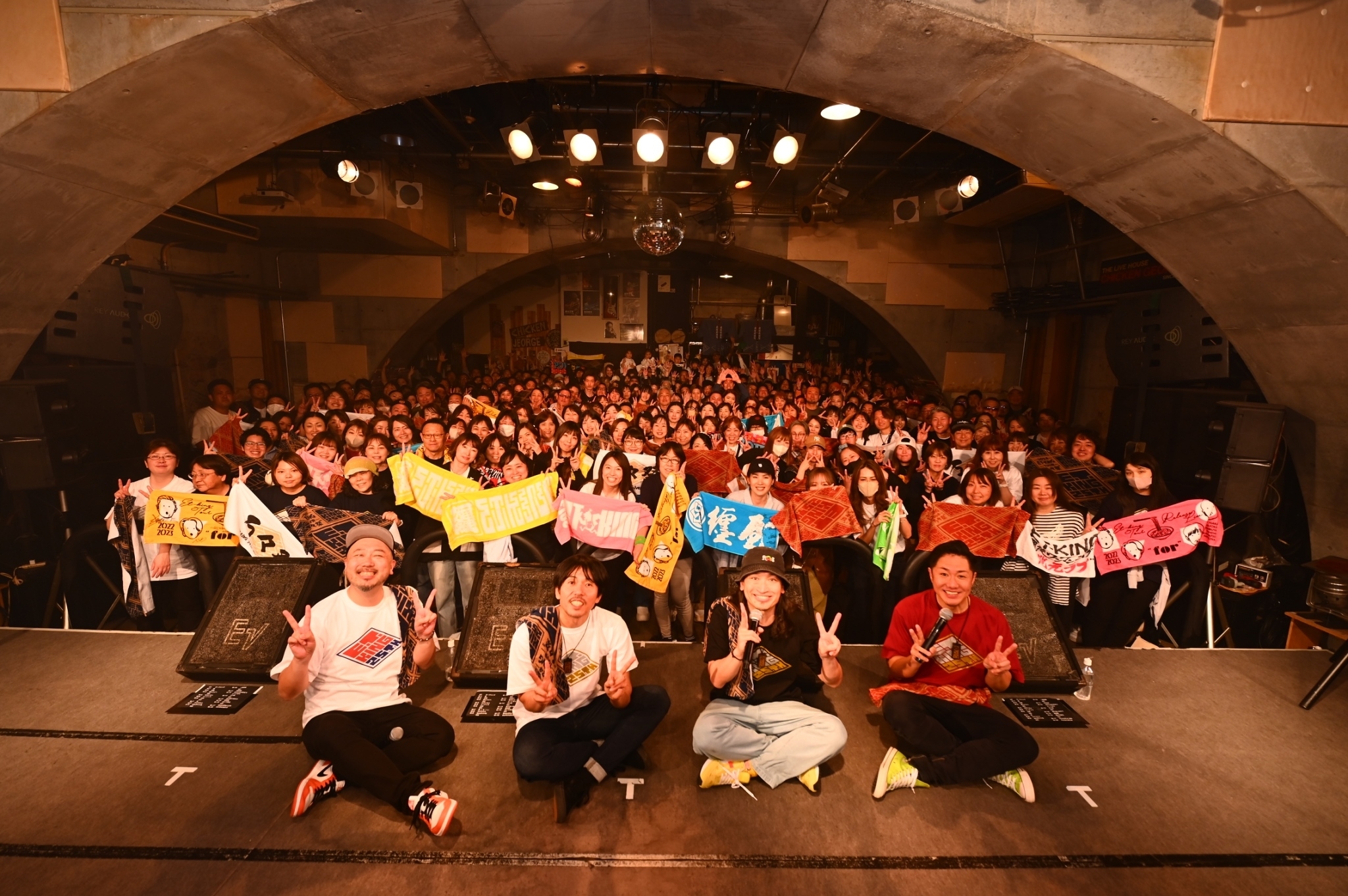 DJ BOOBY:いときんが亡くなる前のツアー『えびす巡業~出稼ぎ篇~(2017年12月全国7公演)』で、ファイナルのZepp Nambaのステージにいときんが立ったんですけど、ファイナルまではBUCCIと5人でツアーを廻ってたんですよね。多分そのツアーはすごく重要で。あの時いときんが全公演出てたら、多分ここまで「ライブをやろう」と思わなかったと思うんですよ。いときんがおらん中でちょっとでも形を作れたから、今があると思う。そう思うと、いときんがそういうふうに遺してくれたのかなと思いますね。