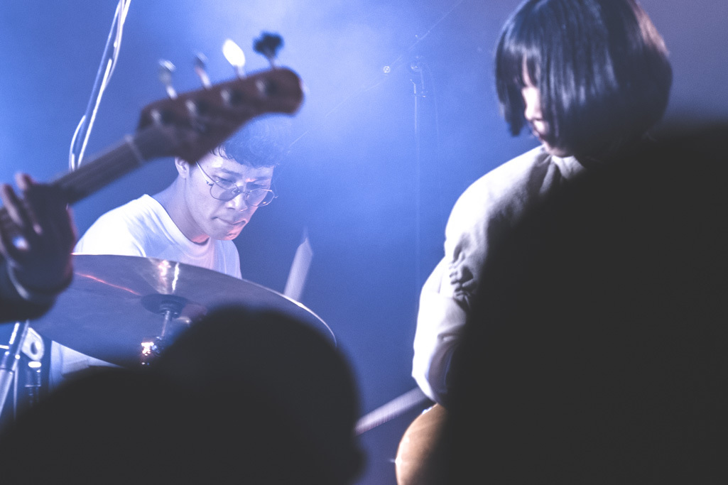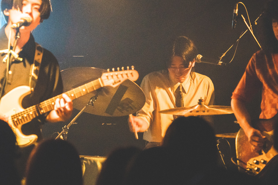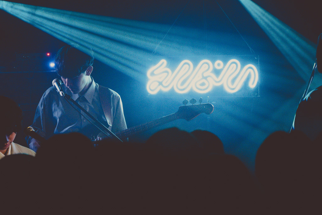 とものしん(Ba)のカウントから「クリームソーダ」へと接続すると、クリームソーダ色のライトが会場を染め上げ、爽やかなムードに。続けて披露された「PIP」では、ワウを駆使した本多秀(Gt)のギターとフカイショウタロウ(Sup Dr)のパワフルなビートが観客の踵を浮かせ、客席を波立たせた。