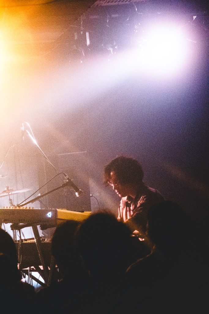 手元も見えない暗さに包まれたフロアと明るいステージの対比が印象的だった「Hurt」を終えると、2度目のMCへ。本村拓磨(Ba)と砂井慧(Dr)、内村は久しぶりに訪れた大阪を観光していた際にやる気が漲る出来事があったと話し、「かつてなく気合いが入っている」と語った。そんな熱量を体現するがごとく、「山」をパフォーマンス。キーボードとギター、ドラムが軽やかなトーンを強める一方で、不穏さを感じるベースのメロディーに引き寄せられる。