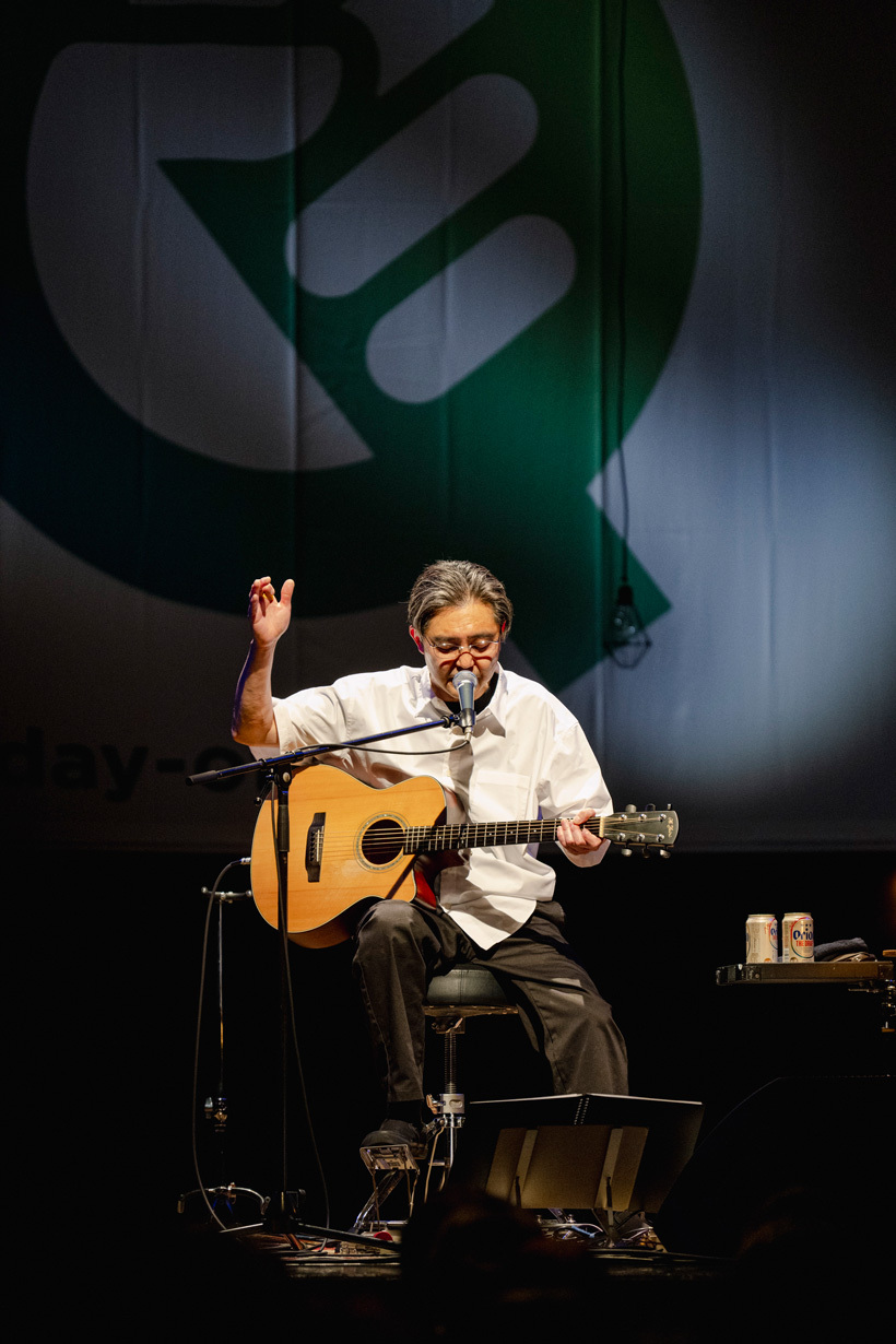 日本全国で弾き語りイベントを開催する『BABY Q』主催者の是澤氏と沖縄のイベンターであるPM Agencyへの感謝も述べる。幸せという素直な感情も明かし、お世話になっている方々への感謝も忘れない漢気ある人間だからこそ、我々も向井秀徳に心から惚れこむのだろう……、ふとそんなことを思った一場面であった。