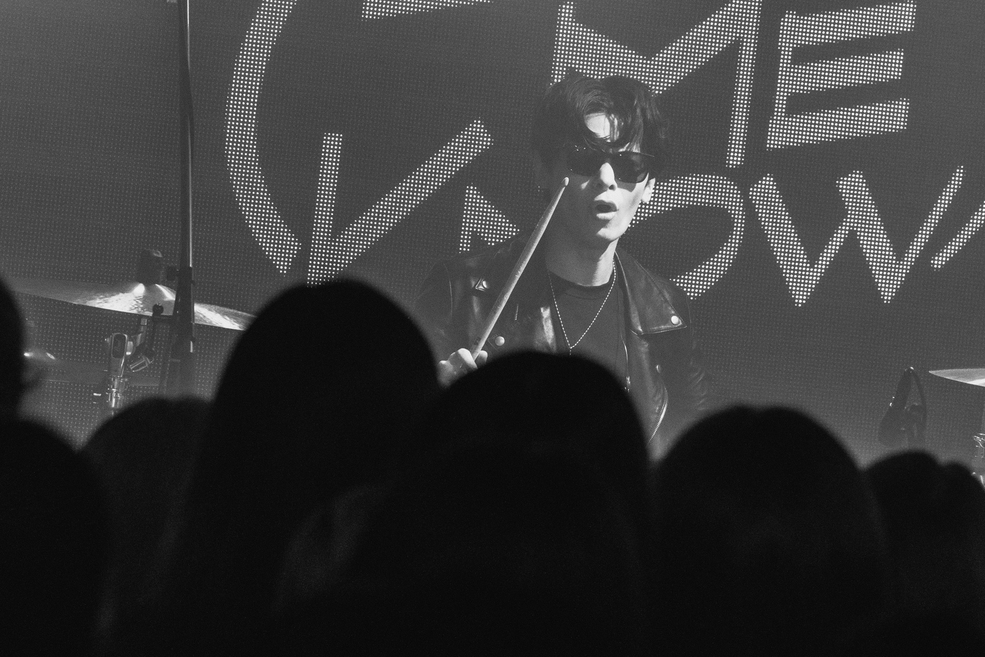 その真ん中にいるボーカルのMattyは、一言で言えば華がある。革ジャンにサングラス、中にブラジルカラーのTシャツを着こみ、リアム・ギャラガーばりにやや顎を上げてスタンドマイクに向かう姿、エレクトリックギターを弾く姿、どれも絵になる。どちらかと言えば繊細な声質なのに、しゃがれた低音もハイトーンのシャウトもこなし、歌に没頭する姿勢に惹かれる。どちらもサングラスをかけたギターのKen_MとドラムのLyoの兄弟は、ジーザス&メリーチェインみたいだ。サポートベース・太田あさひの長い金髪もいいアクセント。音がかっこいいのはもちろん、バンドは見た目がかっこいいほうがかっこいい。