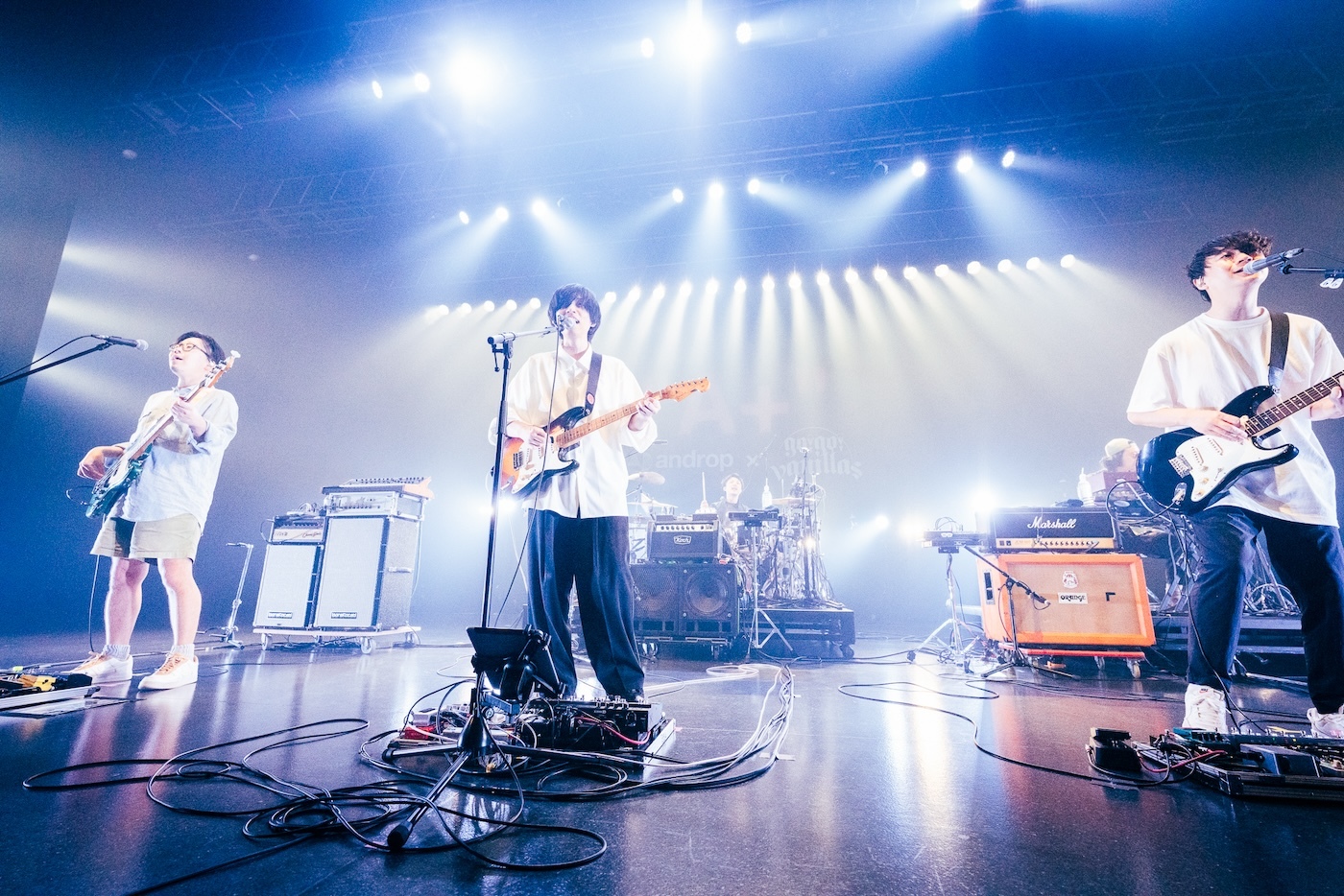 事前に感じた「相性良さそう」の正体。それは音楽との向き合い方の近さだった気がする。それぞれの土台は持ちつつも新しい音楽にも敏感で、その時々で食指の動いたものは貪欲に取り込み、いつの間にか土台部分に組み込んで我がものとしているあたり、2バンドはよく似ている。また、キャリアを追うごとに踊ったり暴れたりする以外の楽しみ方をリスナーに提示してきていることも、その音楽を通して伝える、日々を生きるひとりひとりをエンパワメントするためのメッセージも決して遠いものではない。これを機にandropとバニラズは親交を深めそうな気がするし、それぞれのファンも相手のバンドをより深く知りたくなったのではないだろうか。これぞ対バンの意義であり醍醐味。なんとも爽やかな余韻で“整う”ライブだった。