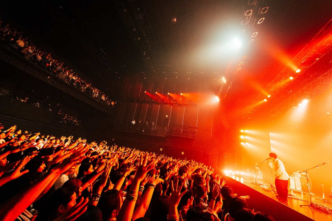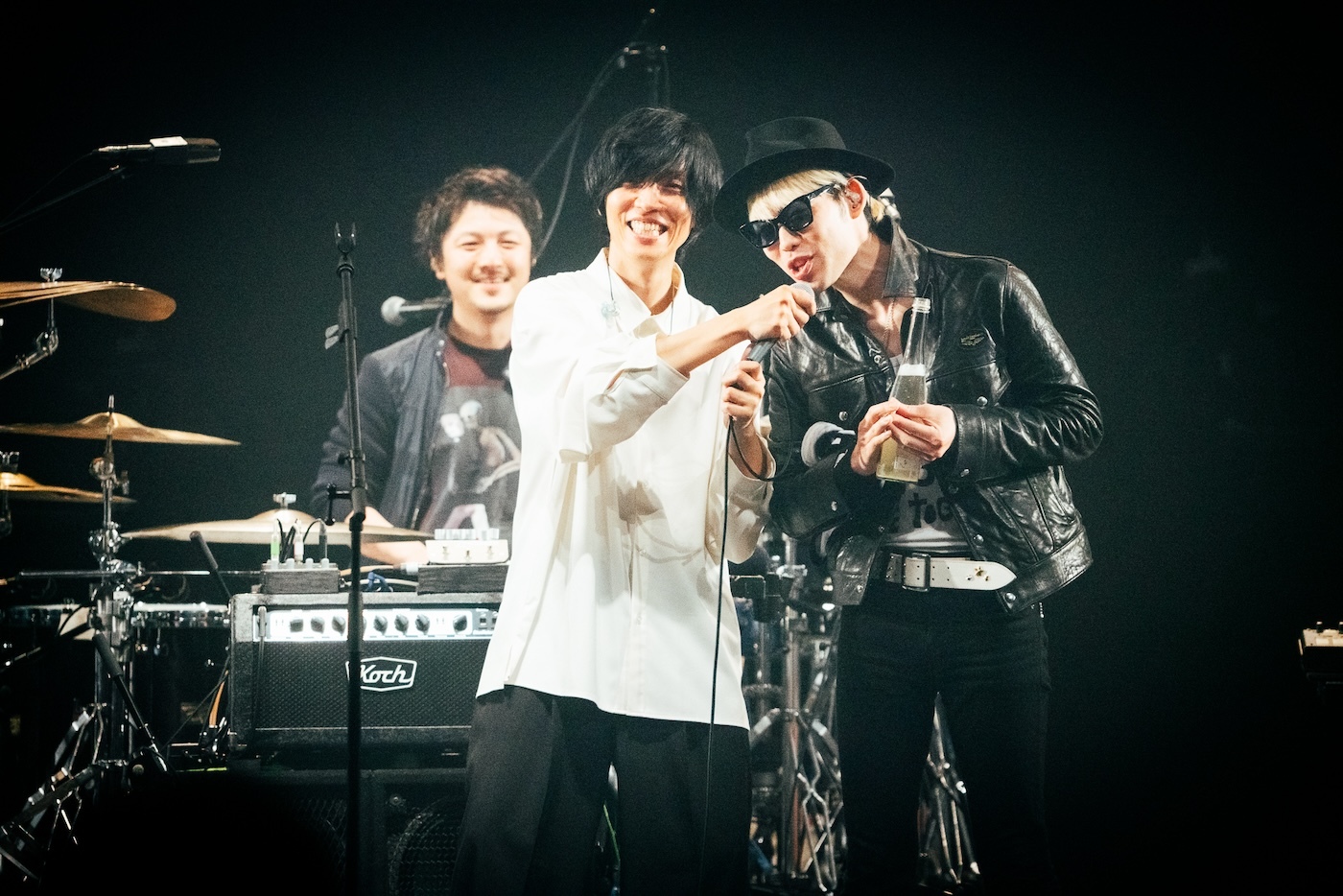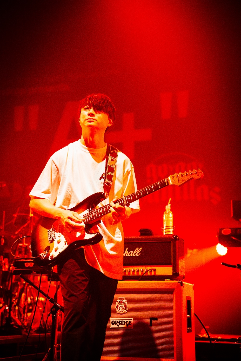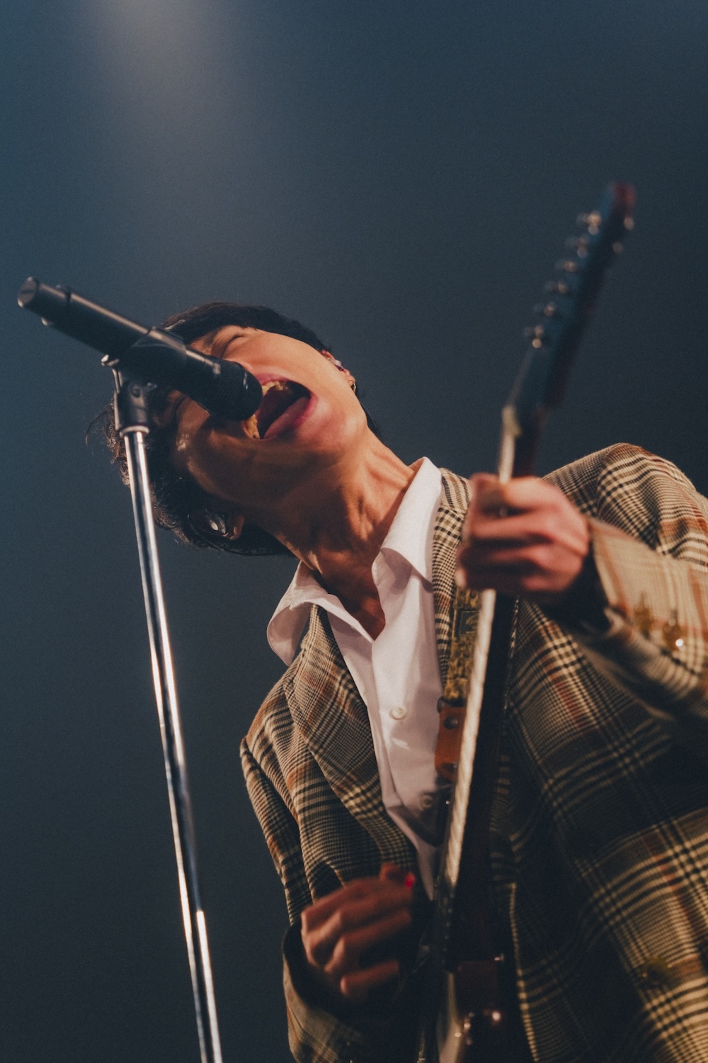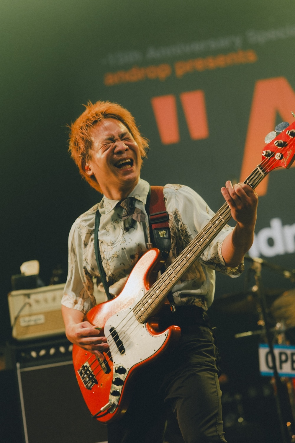 MCでは両バンドの一番の共通点はサウナだ、と牧。今ほどのブームになる前からサウナにハマり、これは良いものを見つけたと喜んでいたら、その頃すでにandropのメンバー(※伊藤彬彦/Dr)は熱波師の資格まで取っていたというエピソードで笑いをかっさらう。加えて6月1日付で事務所を独立して以降でこの日が初ライブであること、だから音を出すことが楽しくてしょうがないのだと告げてから、その言葉通りのエネルギッシュな演奏で「平成ペイン」を投下すれば、また一段と場内の熱狂度合いが高まる。メンバー全員がかわるがわる歌い継ぎながら猛進していくお馴染みの「デッドマンズチェイス」などを経て、ラストは「LIFE IS BEAUTIFUL」。前述したファンクライブサイト上でこの日のために「相手のバンドのファンに聴いてほしい曲」を募り、その1位となった曲だ。目の前の「君」を力強く肯定する音楽と人生の讃歌を高らかに歌い鳴らし、<君となら andropとなら大丈夫>のフレーズを添えてバトンを繋いだ。