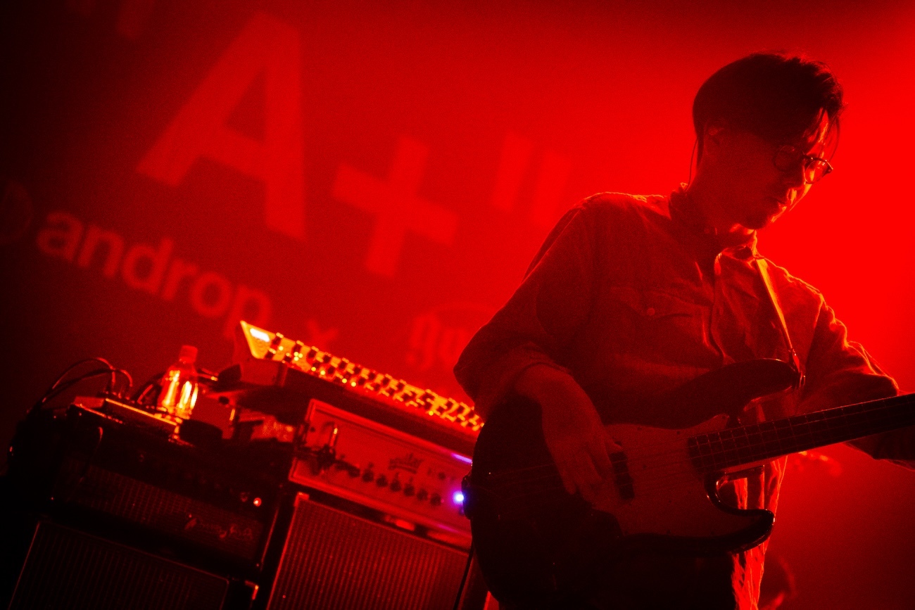 終盤には同じく投票でランクインしていた「One」も披露。こちらは10年前の楽曲で、バキッとした感触でガンガン疾走していくロックチューン。近年の志向とは一線を画すこういうandropの姿も鮮烈で嬉しく、曲中では伊藤がセイヤばりにスティックを放り投げて歓声が上がる(後でしっかりツッコまれていた)。本編最後は盛大なクラップとともに必殺のダンスロック「Voice」を披露。端正なサウンドの中にどこかアソビの部分を感じさせるのは15年に及ぶ積み重ねあってこそだし、その遊びが絶妙なグルーヴ感となって身体を揺らしてくる感覚がたまらない。才気走った若手の頃とはまた違う、これこそ今のandropの味。