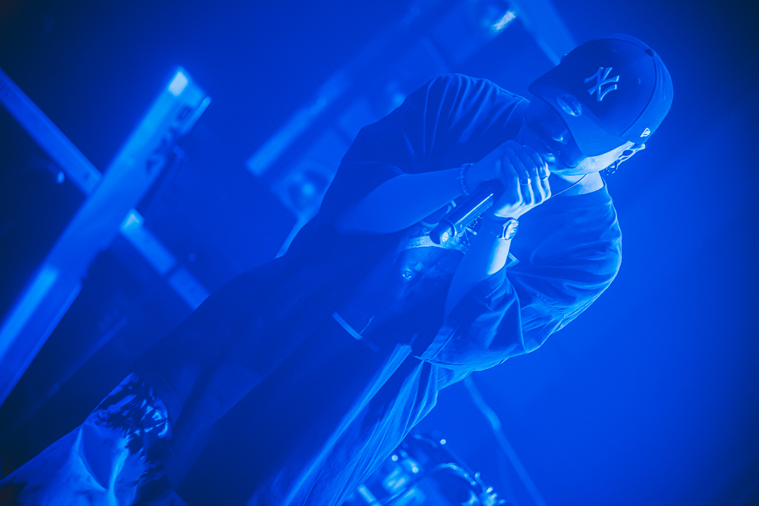 オープナーはスチールパン風のリフが印象的な「BYAKUYA」。高低差のあるメロディラインと複雑なフロウを乗りこなし、儚くもディープな世界に誘っていく。ムーディなトラップ「Nightmare」を歌い終わると、オーディエンスに向かって「みんな飲んでる?」と、親しみを込めたコミュニケーションも。