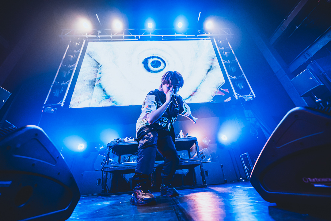 うつむき加減で登場し、1曲目はダークな世界観を持つショートチューン「Batman」。さらにバーチャルな夕暮れ時を感じさせるエレクトロニックなR&B調の「Lucid Dreaming」、切ないピアノハウステイストの「release」と立て続けに披露されたナンバーにはどこか少年性も漂い、エフェクトで加工されているとはいえ、澄んだトーンのボーカル、ほとんど顔を上げない佇まいも相まって自然と歌の内容を耳が追う。